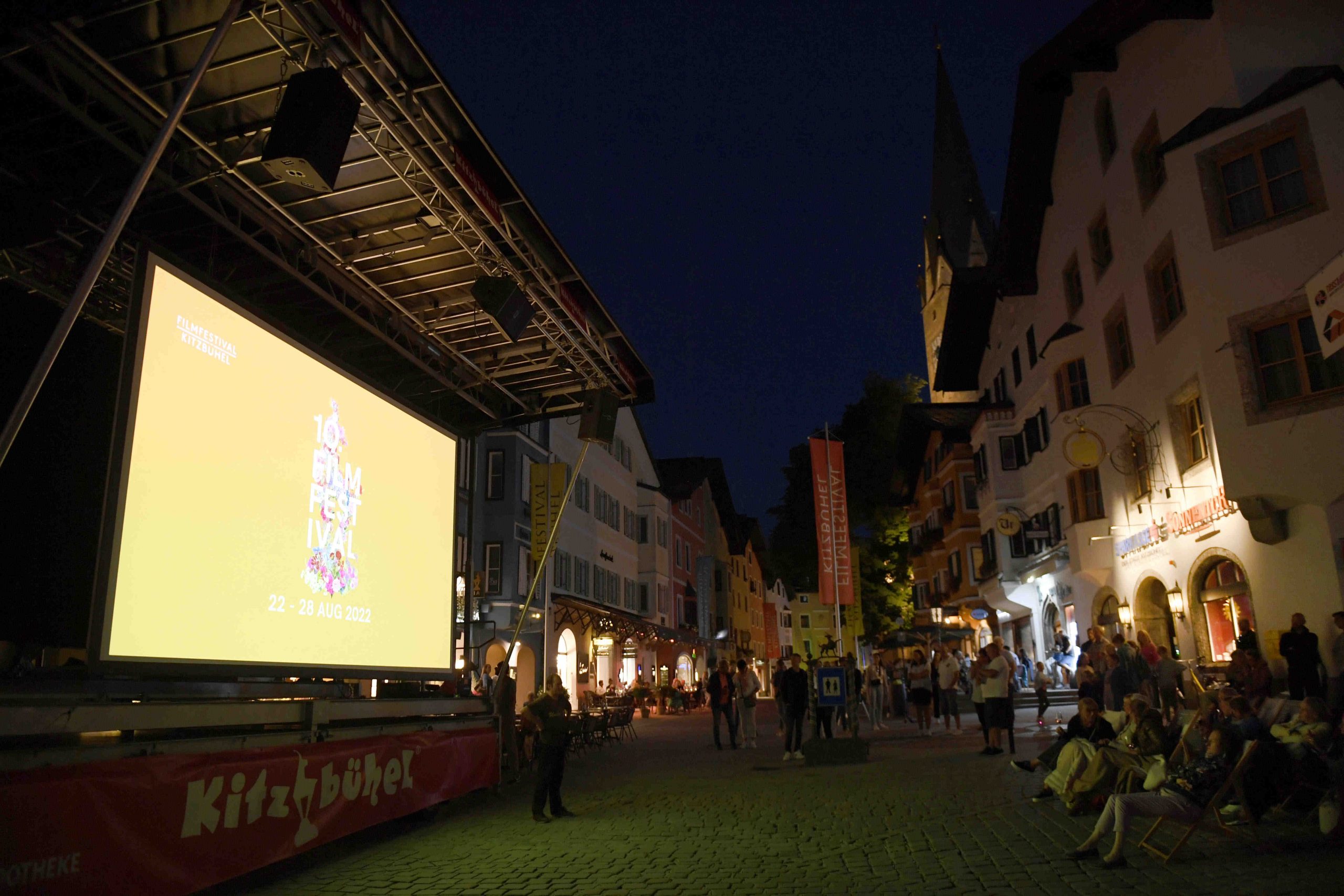 Großes Beitragsfoto: 10. Filmfestival Kitzbühel – FFKB2022. „Kino in der Stadt“ mit dem Film „Corsage“ in der Kitzbühler Innenstadt. (Foto FFKB2022)