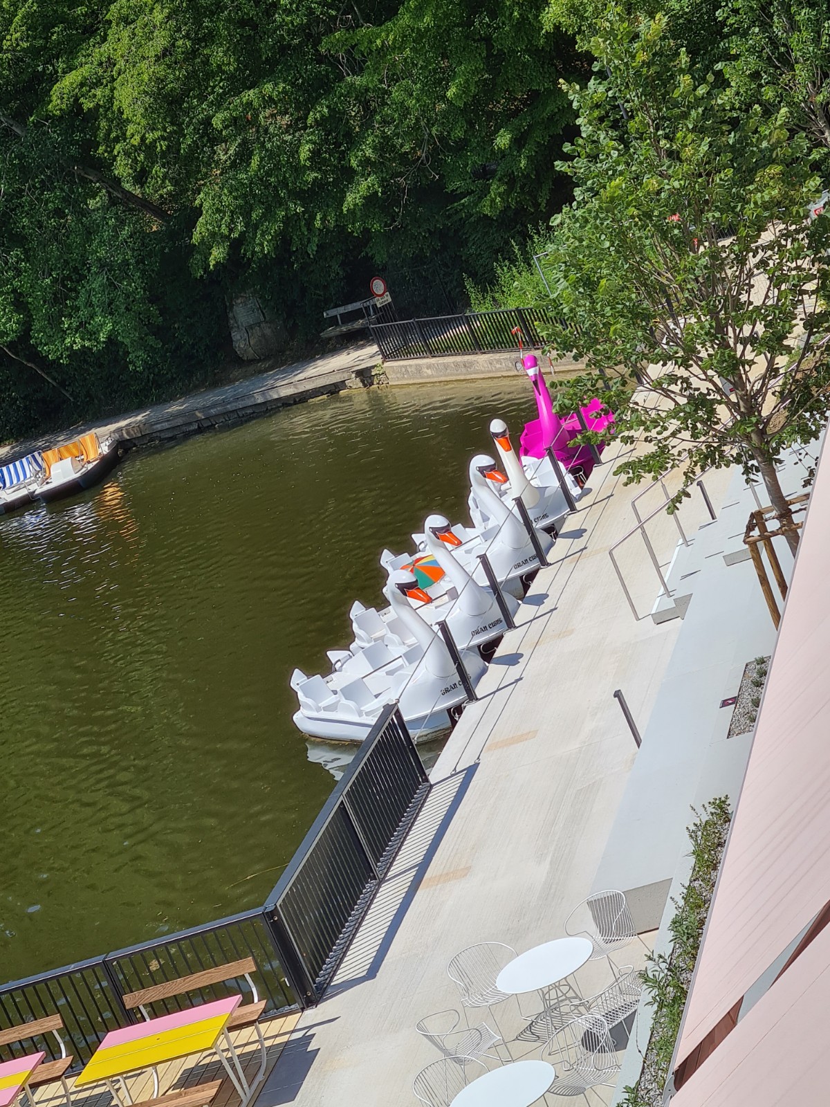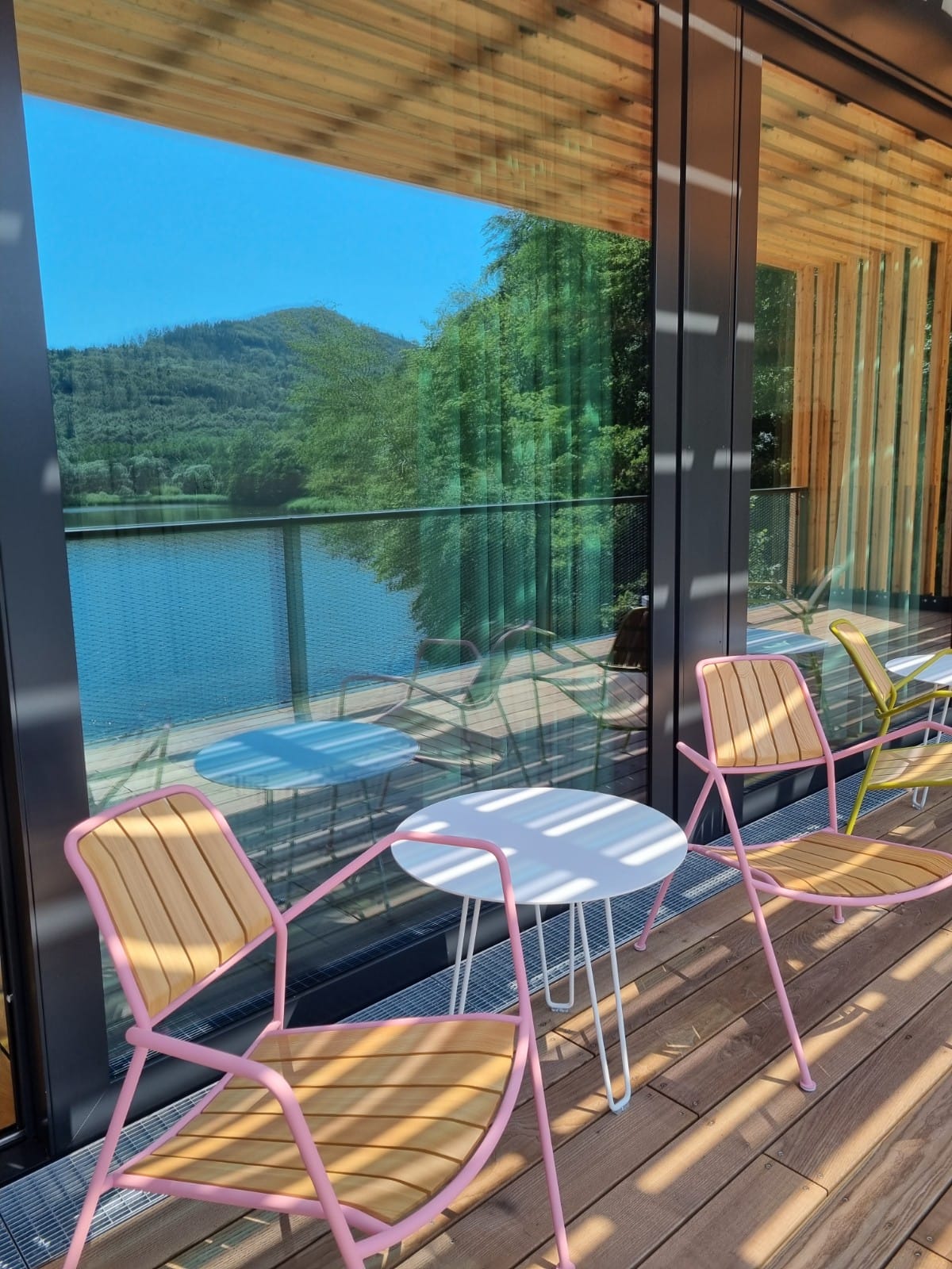 • 100 Sitzplätze Indoor, 100 Sitzplätze Outdoor auf einer überdachten Terrasse und dazu Decks direkt am See