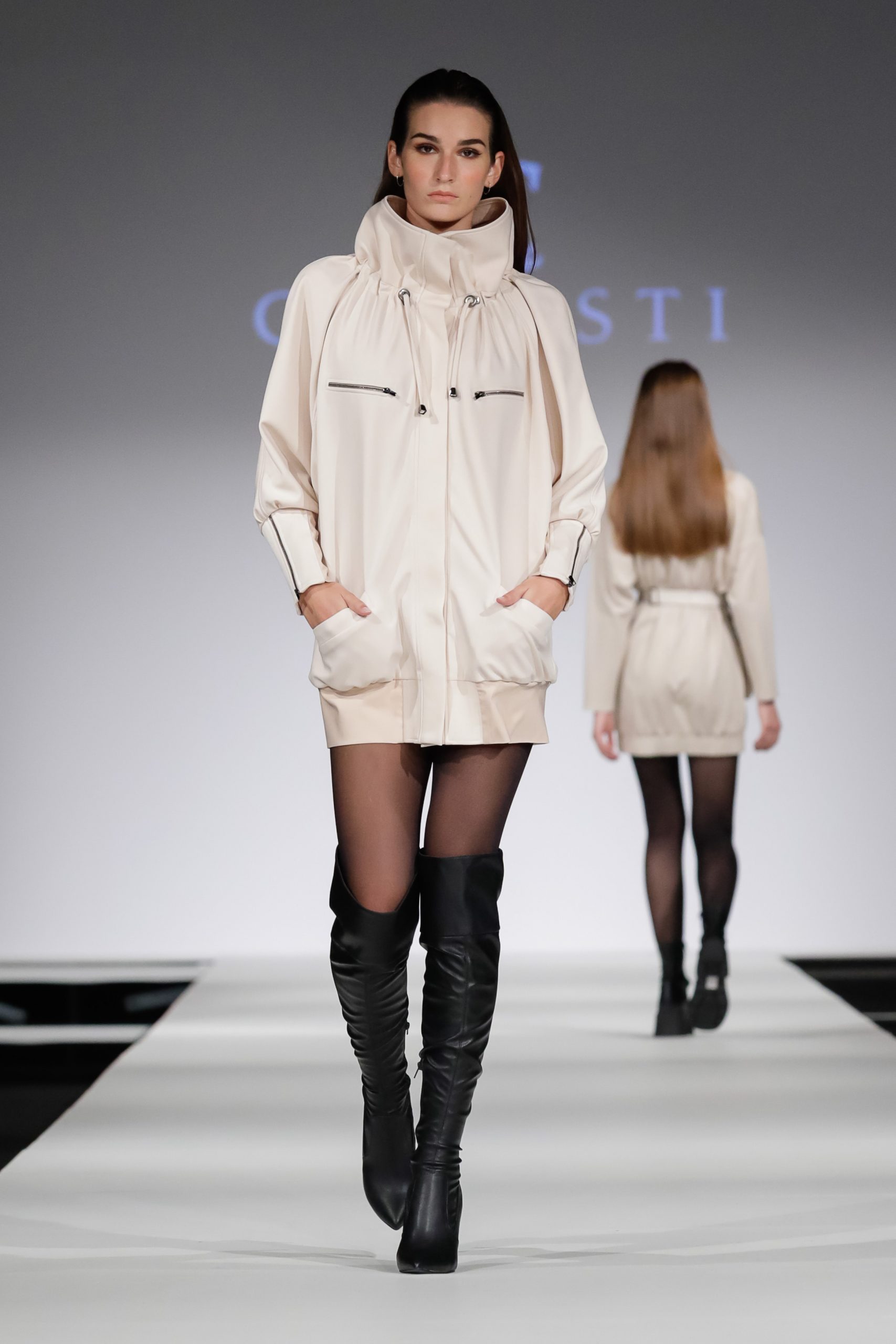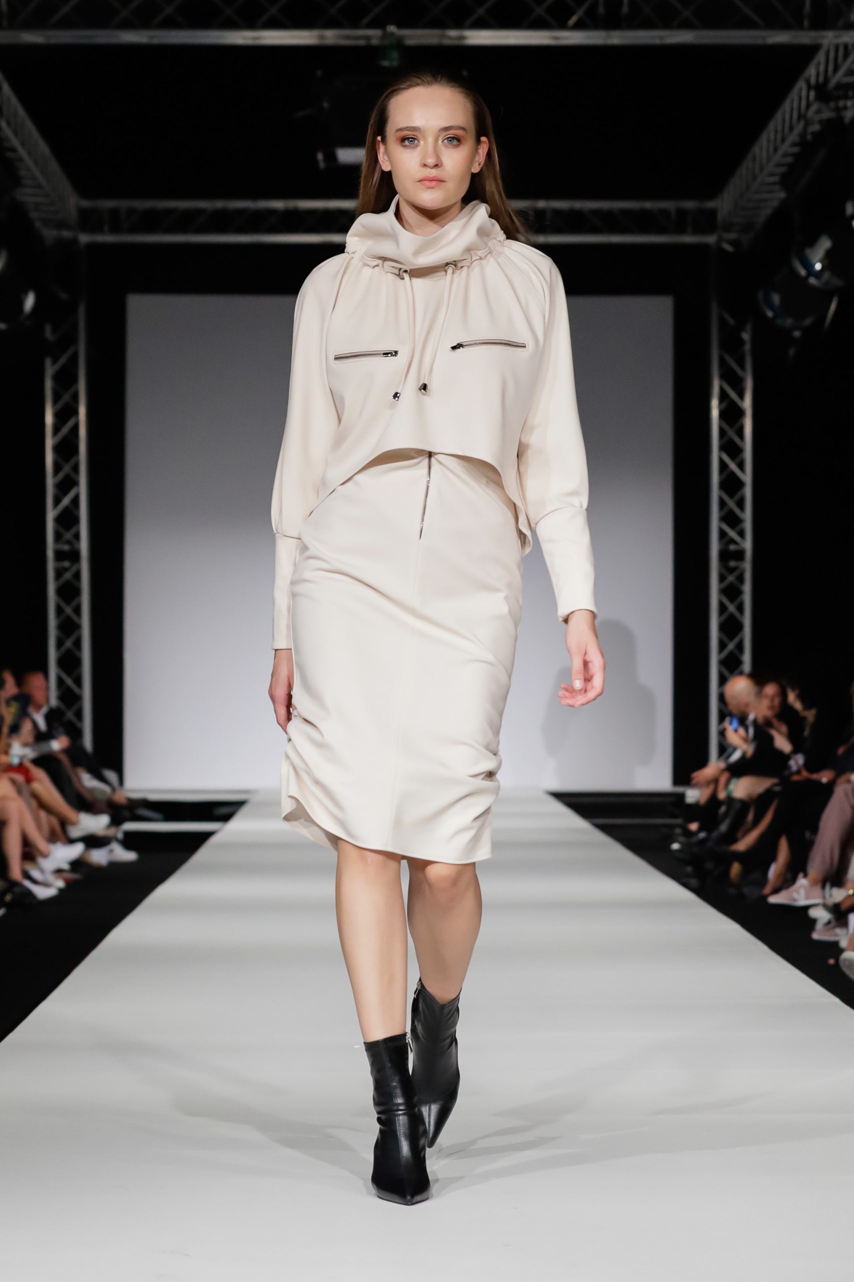 Oversize-Bomberjacken treffen auf taillierte, figurnahe Etuikleider, die diesjährigen Herbstfarben sind Beige, Orange, Terracotta, Altrosa, Petrol, Creme und Schwarz. Fancy und zugleich chic ist die daily Business-Wear. Avantgardistisch die Couture-Kollektion mit Abendkleidern, die garantiert einen WOW-Effekt hinterlassen.