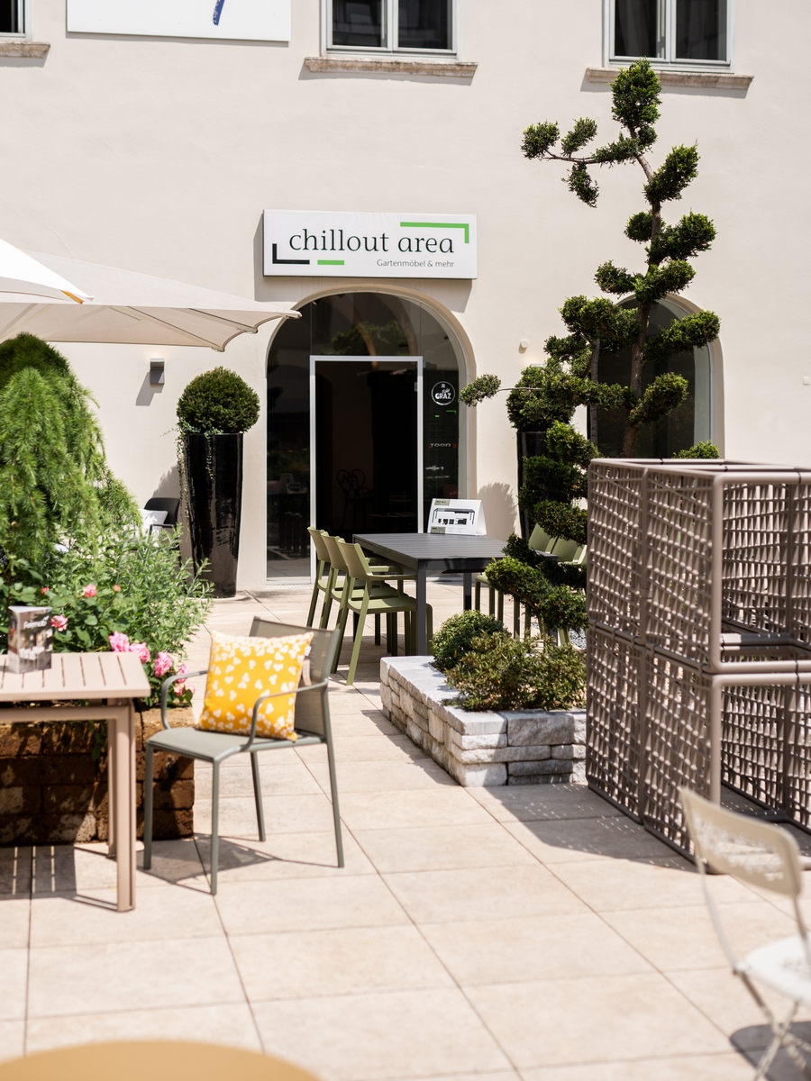 Mittlerweile gibt es oftmals keine richtige Trennung mehr zwischen drinnen und draußen, denn Wohnen im Freien wird immer beliebter. „Wir bieten zusätzlich zur Projektentwicklung und Gebäuderevitalisierung eine komplette Planung und Gestaltung von Terrassen, Balkonen, Schwimmteichen und Garten alles aus einer Hand an“, erklärt mir Sandra bei meinem Besuch in ihrem schönen chillout area Geschäft in der Grazer Burggasse 4 | Palais Trauttmansdorff. „Wir denken absolut ganzheitlich.“