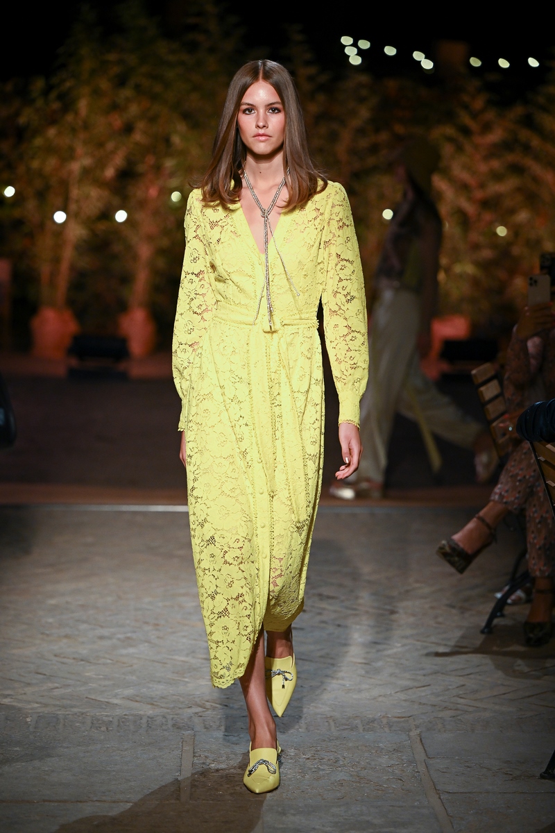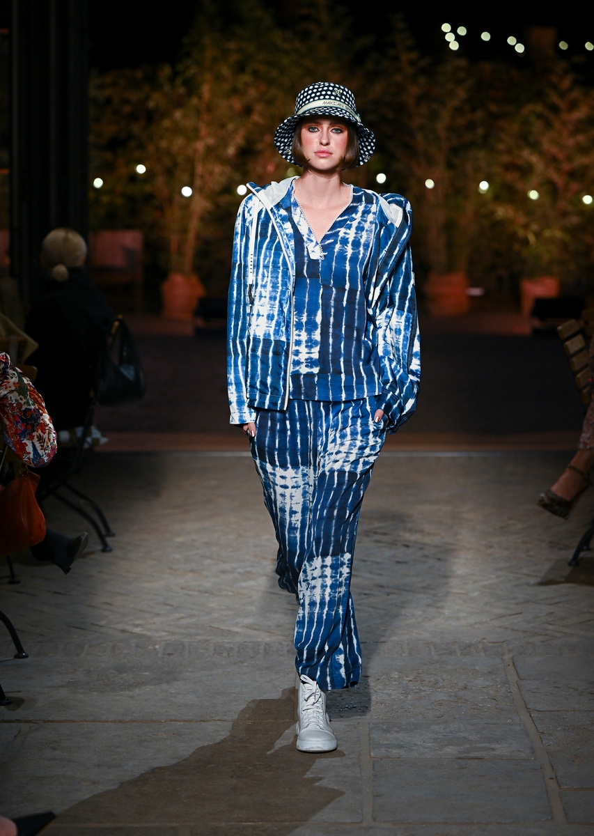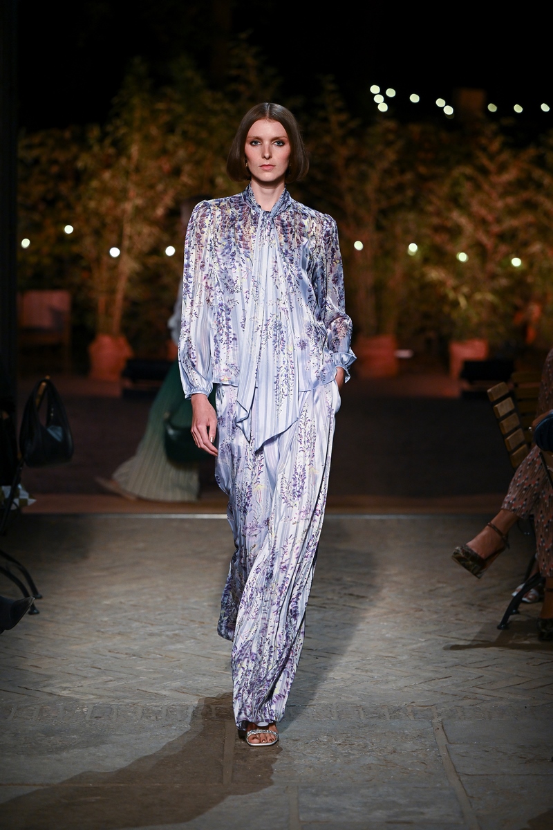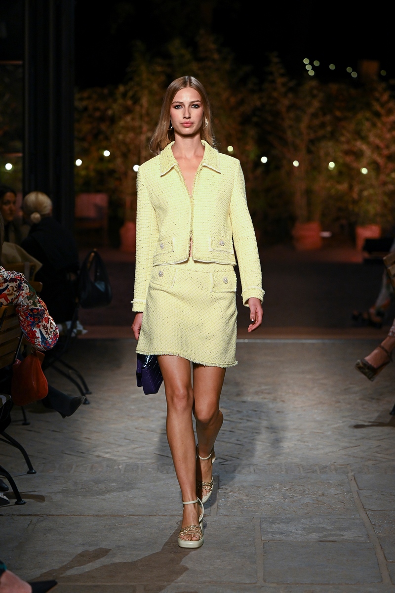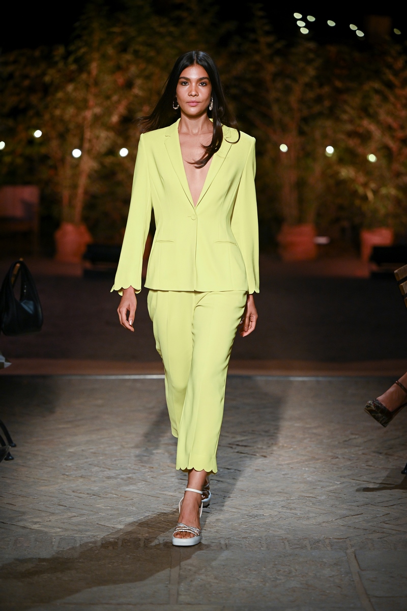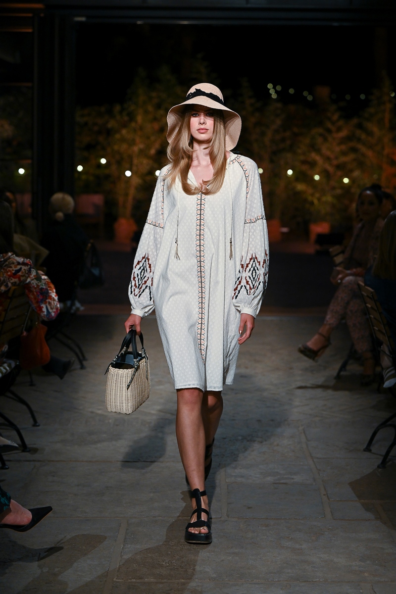 Luftige Stufenkleider, weit fließende Hosen und trendige Cropped Tops zogen sich als Stilelemente durch die Show. Farbige Croissantbags im Python-Style und Glitzersandalen rundeten die Outfits ab und standen immer im farblichen Kontrast zueinander.
