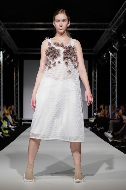 Die Plattform einer Runway-Show wollte Marlen Sabetzer auch für eine weitere „Botschaft“ nützen – „daher das Kleid mit der Aufschrift „Don’t kill yourself“.