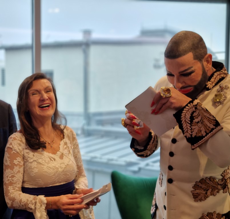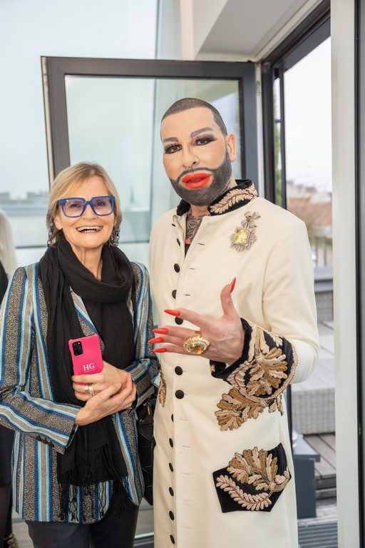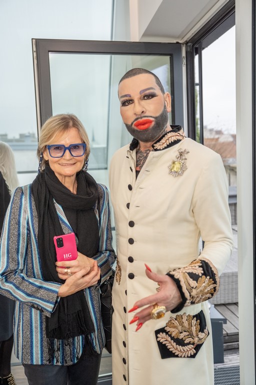 Verleihung des Kaiserlich Österreichischen Franz Joseph-Orden an Stardesigner Harald Glööckler. Im Bild mit Journalistin Hedi Grager. (Foto Rene Brunhölzl)