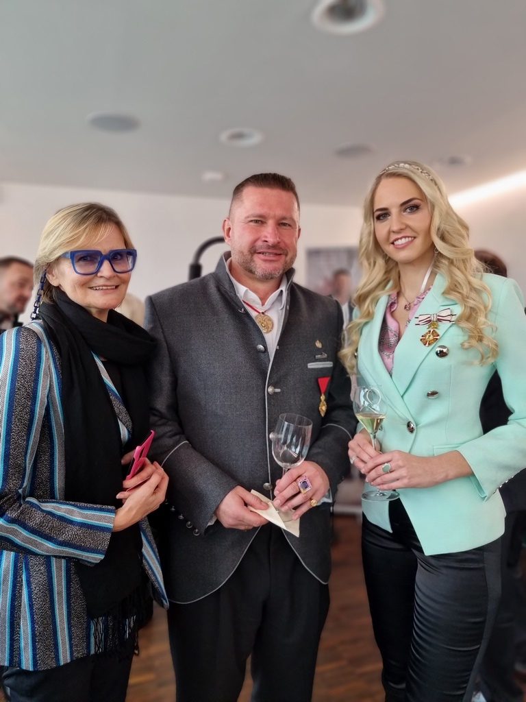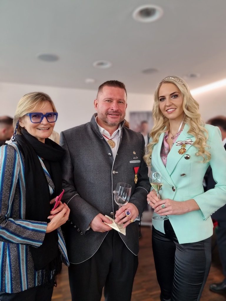 Verleihung des Kaiserlich Österreichischen Franz Joseph-Orden an Stardesigner Harald Glööckler. Hedi Grager, Thomas Schröck und Miss Europe Beatrice Turin. (Foto Reinhard A. Sudy)