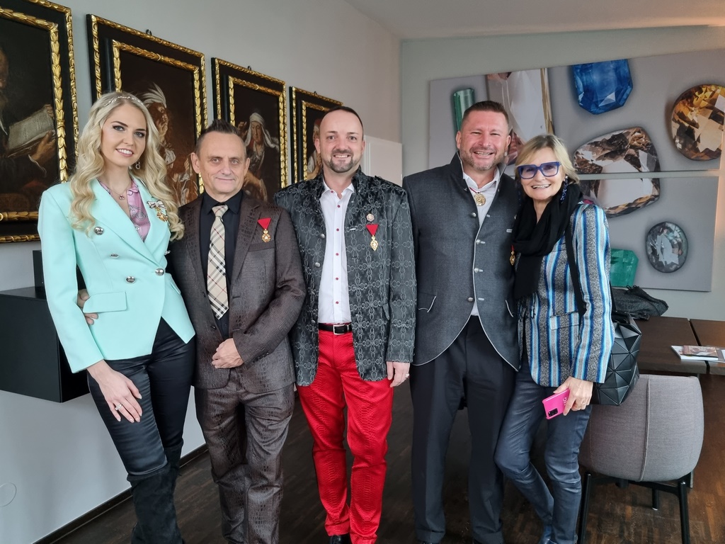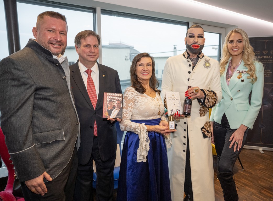 Verleihung des Kaiserlich Österreichischen Franz Joseph-Orden an Stardesigner Harald Glööckler. Sandor und Herta Margarete Habsburg-Lothringen, Beatrice Turin und Thomas Schröck. (Foto Reinhard A. Sudy)
