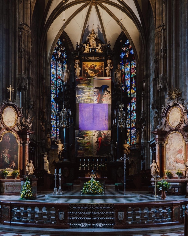 Das Altarbild ‚Die Auferstehung‘ von Fuentes reiht sich nun als weiteres Kunstwerk in jene Werkreihe ein, das vor dem Hauptaltar im Stephansdom von Künstlern präsentiert wurde.