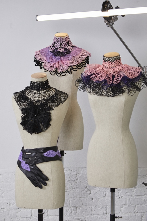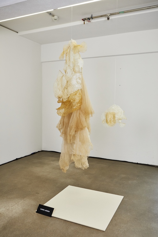 Karen Jessen kreiert durch Upcycling eher Kunst als funktionale Bekleidung und präsentierte ein Kleid mit Hut – alles aus Spitze mit Harz. (Fotos Julia von der Heide for Nowadays)