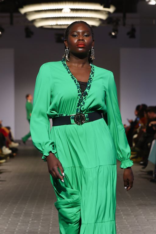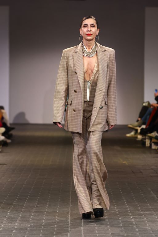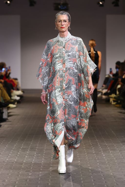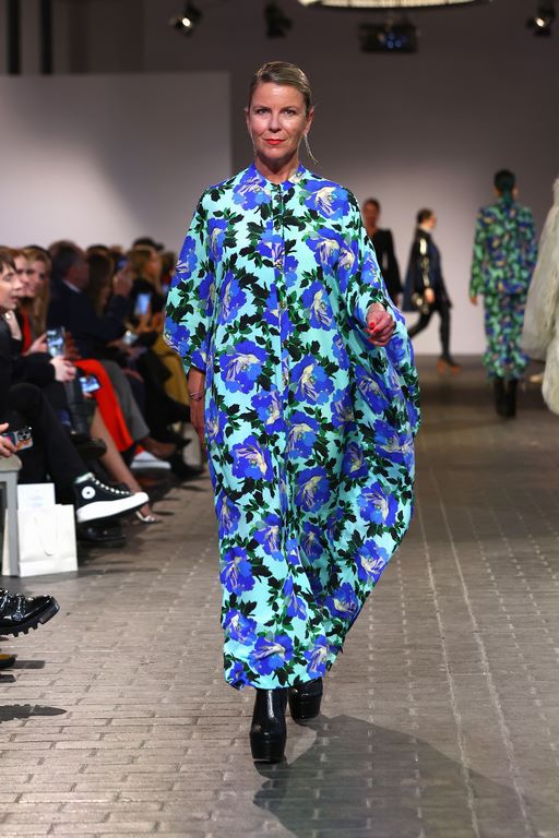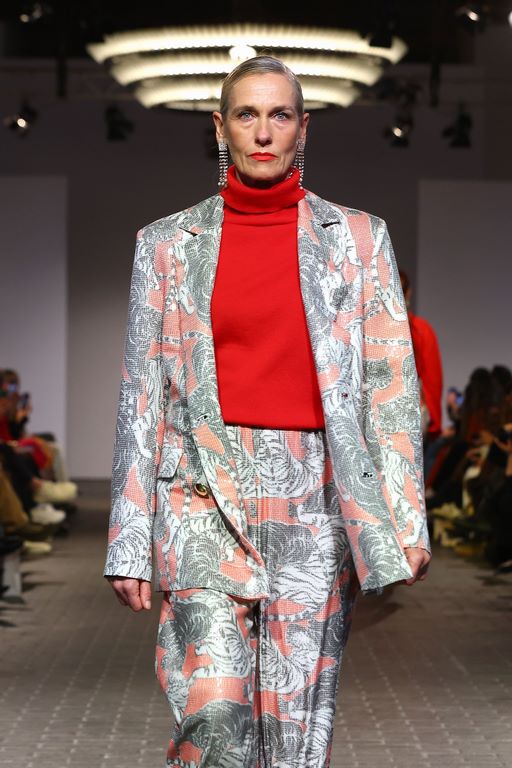 Ausgewählte Schmuckstücke in Form einer Kooperation mit Bijou Brigitte brachten seine Kollektion noch mehr zum Funkeln. Und die Auswahl der Models setzt den Diversitäts-Fokus der letzten Saisons fort: Alle Generationen sind vertreten. Ostertag spricht davon, es seien auch Kundinnen gelaufen. Auf dem Laufsteg entdeckte man besonders viele bekannte Gesichter der letzten Staffeln von Germany’s Next Topmodel: unter anderem Lou-Anne Gleißenebner-Teskey, Klaudia Giez, Romina Palm, Dascha Carriero und Vanessa Kunz. In der kommenden Staffel ist der Designer aber nicht involviert. „Es passte zeitlich einfach nicht”, erklärt Ostertag im Interview nach der Show.