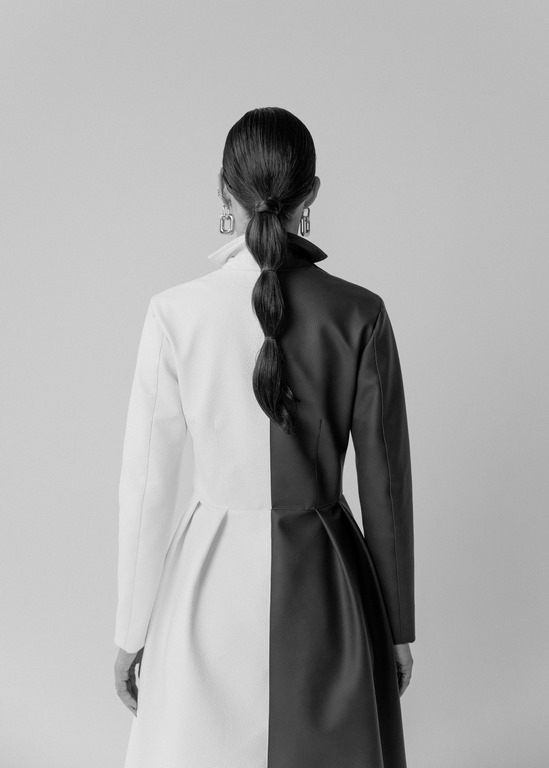 Bei den rund 34 Outfits treffen schöne und hochwertige Basics auf gewohnt gekonnte Materialkompositionen, die durch optische Effekte und Verzierungen einen widerspenstigen Look kreieren.