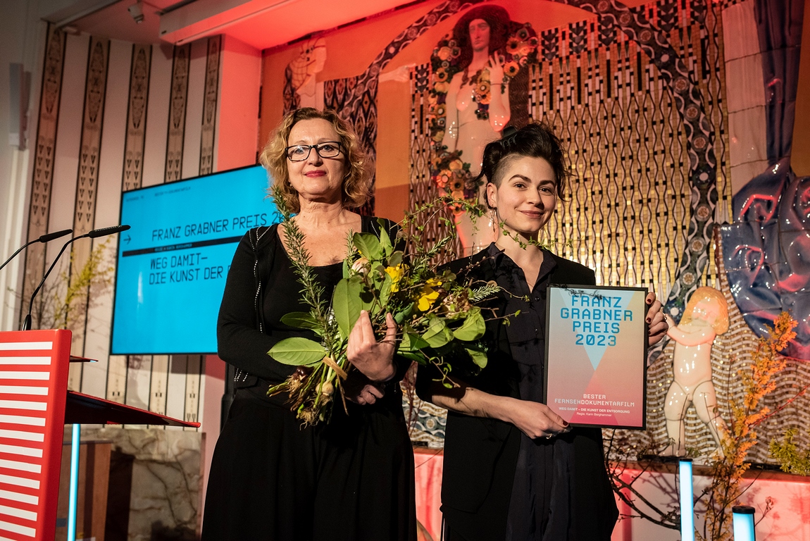 Preisträger in der Kategorie Fernsehdokumentarfilm ist Weg Damit – Die Kunst der Entsorgung von Karin Berghammer (AT 2022).