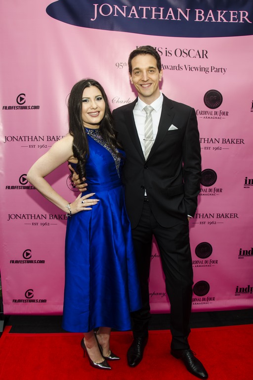 Jonathan Bakers jährliche Oscar-Viewing-Party: Nicole Muj, Ion Muj. (Photos by Nelson Shen, Tshombe Sampson)