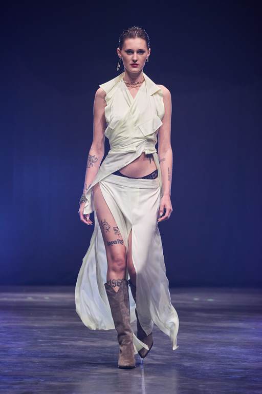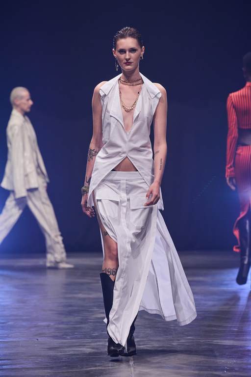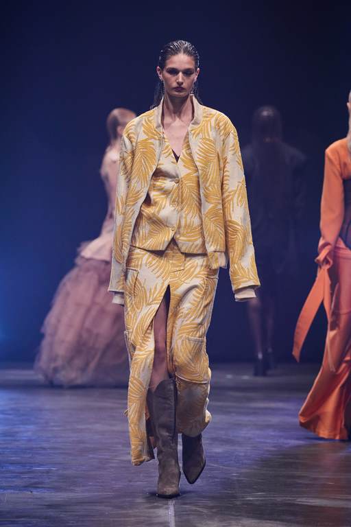 „Beverly Hills 2023.“ überrascht zudem mit Design-Elementen wie dekonstruierten Hemden und Blusen sowie mehrlagig gerafften Tüll-Kleidern. Die dominierenden Farben sind orange, bordeaux, schwarz, weiß und diverse Gelbtöne.