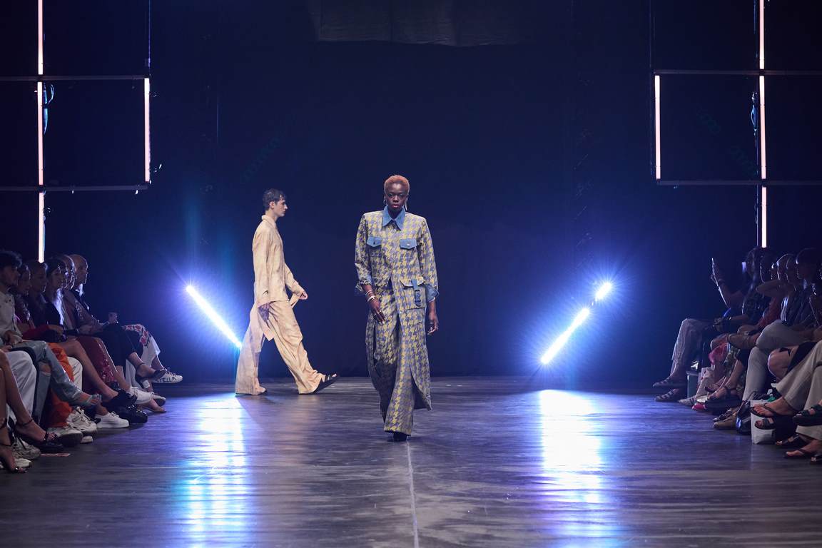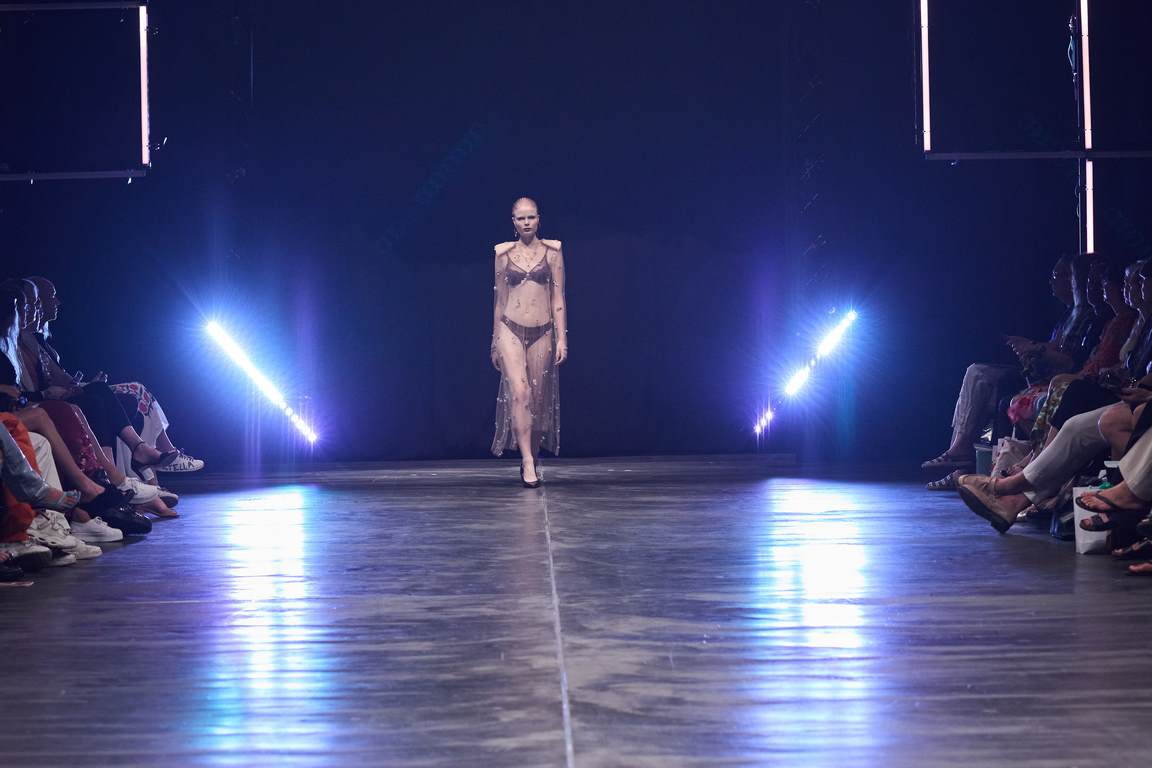BERLIN, GERMANY – JULY 11: A model walks the runway during the Kilian Kerner Runway Show as part of the W.E4. Fashion Day at Verti Music Hall on July 11, 2023 in Berlin, Germany. (Photo by Gerald Matzka/Getty Images for Kilian Kerner)