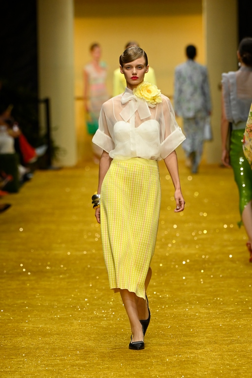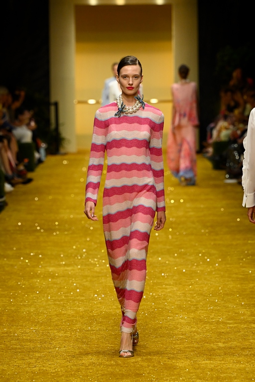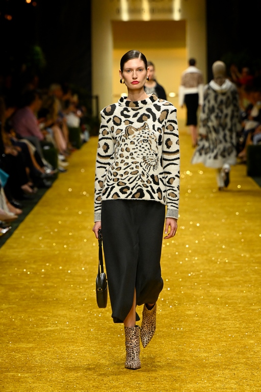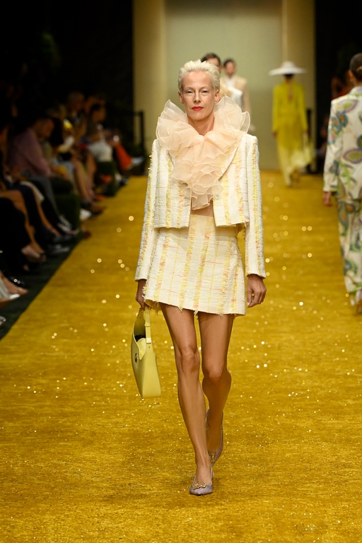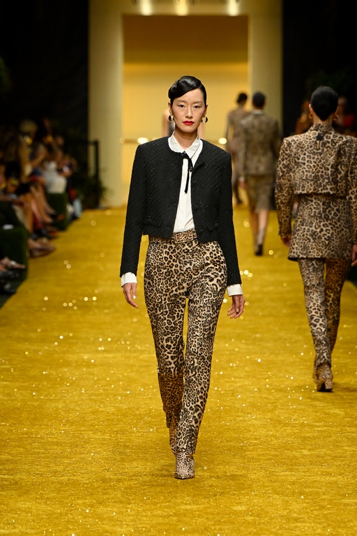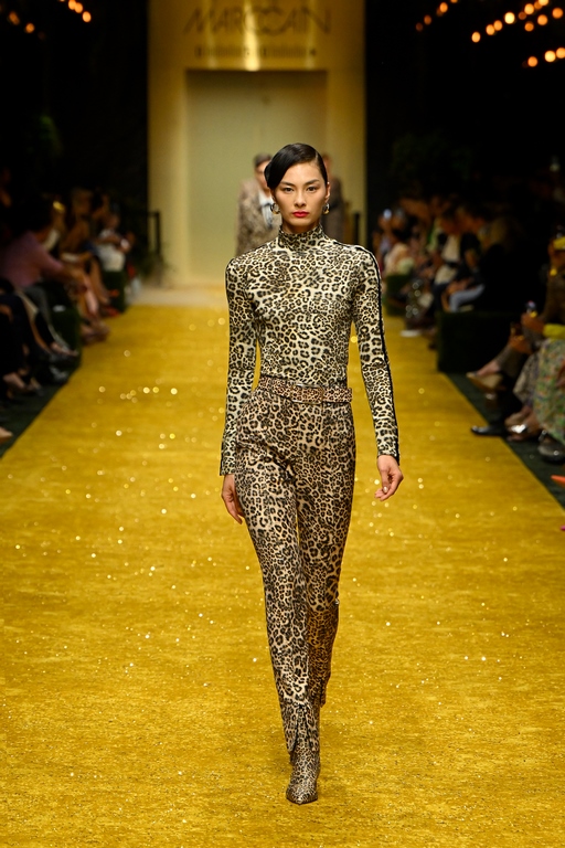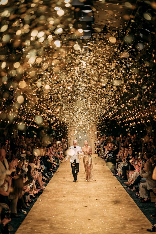 Glamouröser Höhepunkt des Abends war die Fashion Show im Leozelt. Der Innenraum verwandelte sich in einen Zauberwald, mit schwebenden Glühwürmchen, üppigen Pflanzen und Bäumen. Die 50 Models, darunter Supermodel Karolína Kurková, die die Show eröffnete, betraten den Catwalk aus einem goldenen Aufzug, verborgen in einem Baum. Gleich zu Beginn präsentierten sie auf dem nicht 50, aber 70m langen Catwalk die 50-teilige Jubiläumskollektion.