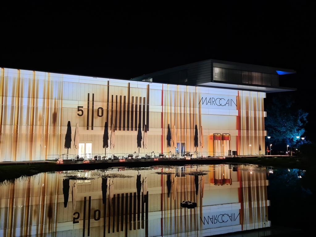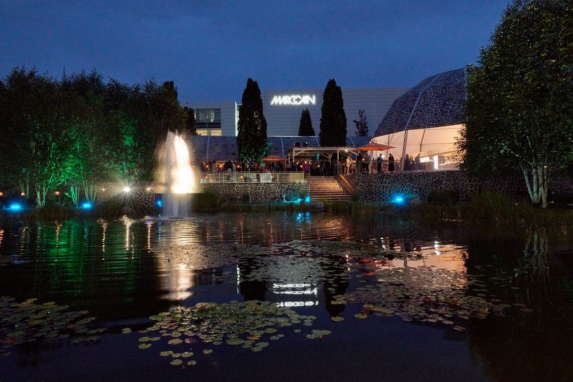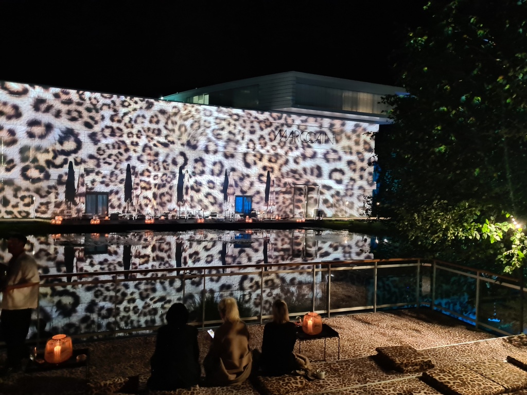 Die Gäste wurden an diesem Abend förmlich verzaubert – nicht nur mit den expressiven Kollektionen, sondern ebenso mit einem beeindruckenden Ambiente. Dem typischen Marc Cain Leo kam dabei eine Hauptrolle zu. So zierte das unverwechselbare Animalmuster die gesamte Fassade des Festzeltes und auch die idyllische Gartenanlage mit See und exklusivem Terrassenaufbau zeigte sich im Leo Style. Diese aufwändige Inszenierung ließ die Gäste geradezu eintauchen in eine atemberaubende Leo-Welt.