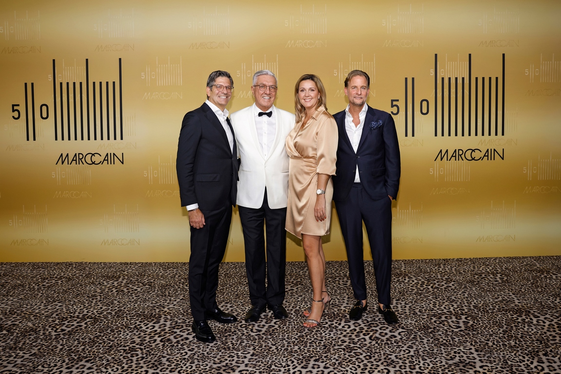 BODELSHAUSEN, GERMANY – AUGUST 31: Stephen Belfer, Helmut Schlotterer, Diana Brajkovic and Dirk Büscher during the Marc Cain Fashion Show to celebrate their 50th anniversary at Marc Cain GmbH on August 31, 2023 in Bodelshausen, Germany. (Photo by Franziska Krug/Getty Images for Marc Cain)