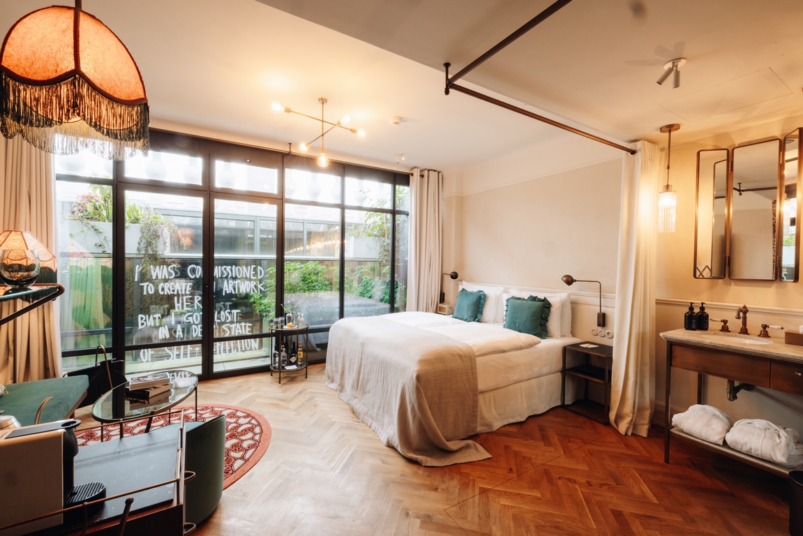 Das Hotel Motto hat 91 Zimmer und Suiten, sie sind passend zu den Themen „Flora“ oder „Fauna“ eingerichtet. Stoffbezogene Wände und eigens für das Hotel gestaltete Teppiche, Möbel, Fliesen und Lampen ziehen sich wie ein roter Faden durch das gesamte Haus und erzeugen ein ungewöhnliches Gefühl von Nostalgie. Überall spürt man die große Liebe zum Detail.
