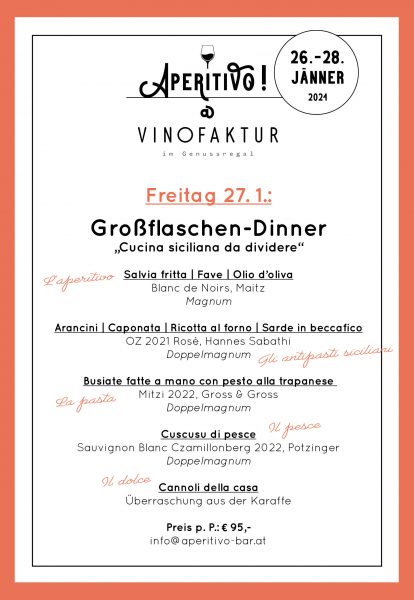Freitag 26. Jänner 2024: Großflaschen-Dinner „Cucina siciliana da dividere“: