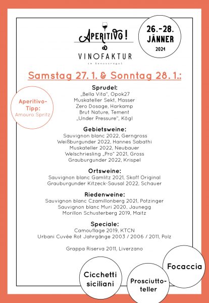 Mit viel Glück gibt es noch Restplätze – Reservierungen unter info@aperitivo-bar.at