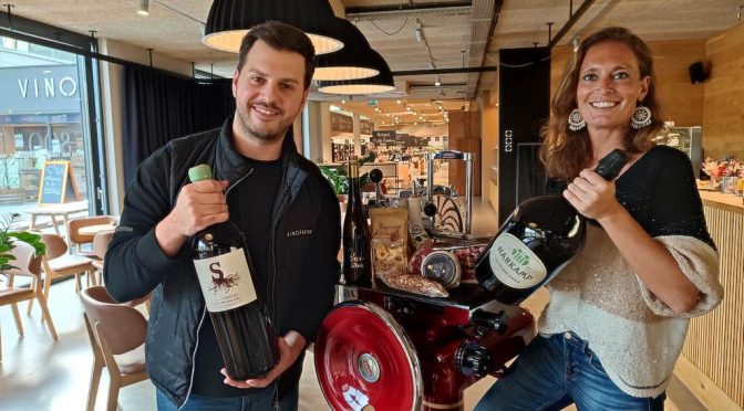 Großes Beitragsfoto: APERITIVO – 1. Winter-Pop-up in der Vinofaktur in Vogau. Martin Lückl, Vinofaktur, und Christina Dow. (Foto Aperitivo)