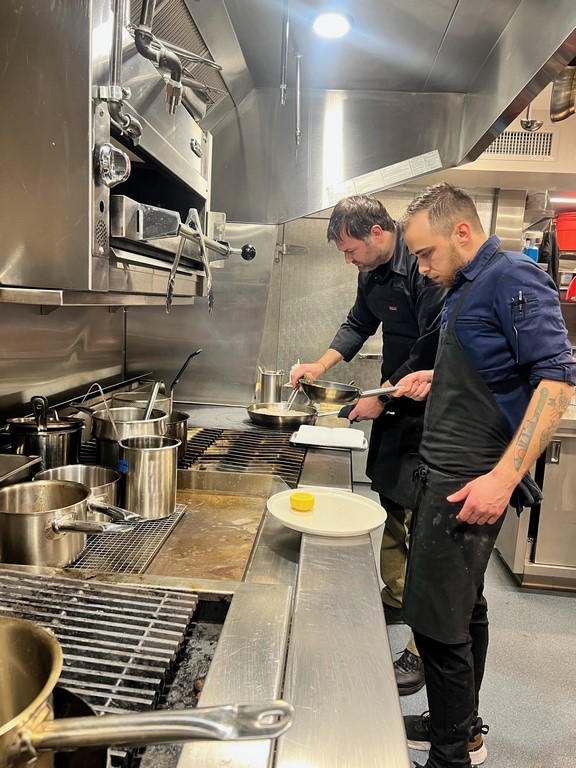 Das Menu im „Lustig“ ist ein Walzer durch die Küchen Europas mit etwas internationalem Einfluss – es gibt einige Gerichte, die niemand sich nur erdenken konnte wie z.B. Hühnerleber Brandteig Krapfen mit Schokolade und Riesling, oder die Raclette Pizza – es macht Spaß, den Leuten eine neue Art von Gerichten vorzustellen.