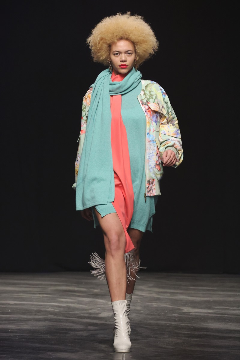 Flowers in the dark. Die naturnahen Farben der Kollektion lassen den Laufsteg erstrahlen: Leuchtendes Pink und mystisches Violett, begleitet von dynamischem Fuchsia. Mint, Pfirsich und Gelb leuchten um die Wette. Den beruhigenden Kontrast bilden sattes Tannengrün und tiefes Nachtblau. Altrosa, Creme, Offwhite und Schwarz schließlich runden den Farbfluss ab und geben der Kollektion die nötige Tiefe und edle Anmut. Das Farbspiel löst Energieschübe aus und versetzt Ostertags Musen in Schwingung Auch haptische Erlebnisse sind garantiert. Die Kollektion lädt zum Streicheln und Wohlfühlen ein.
