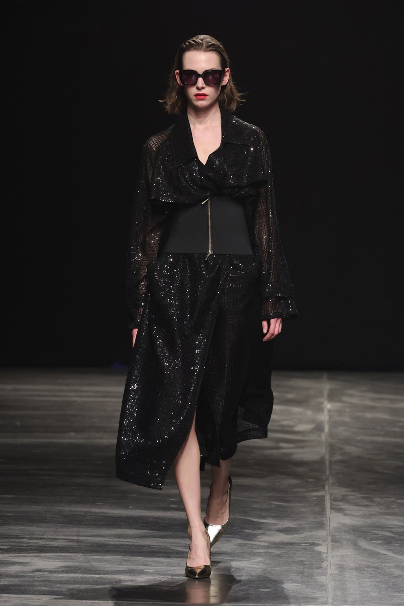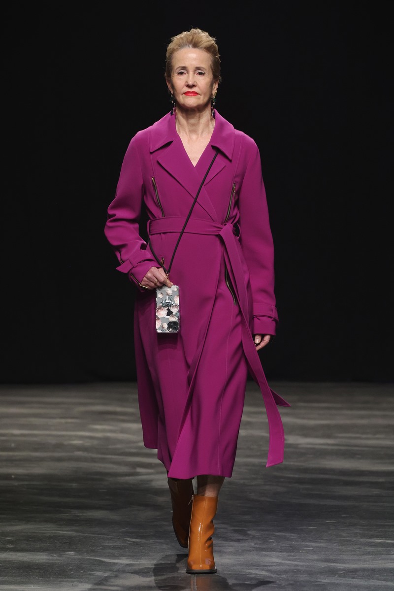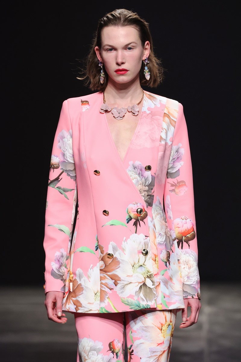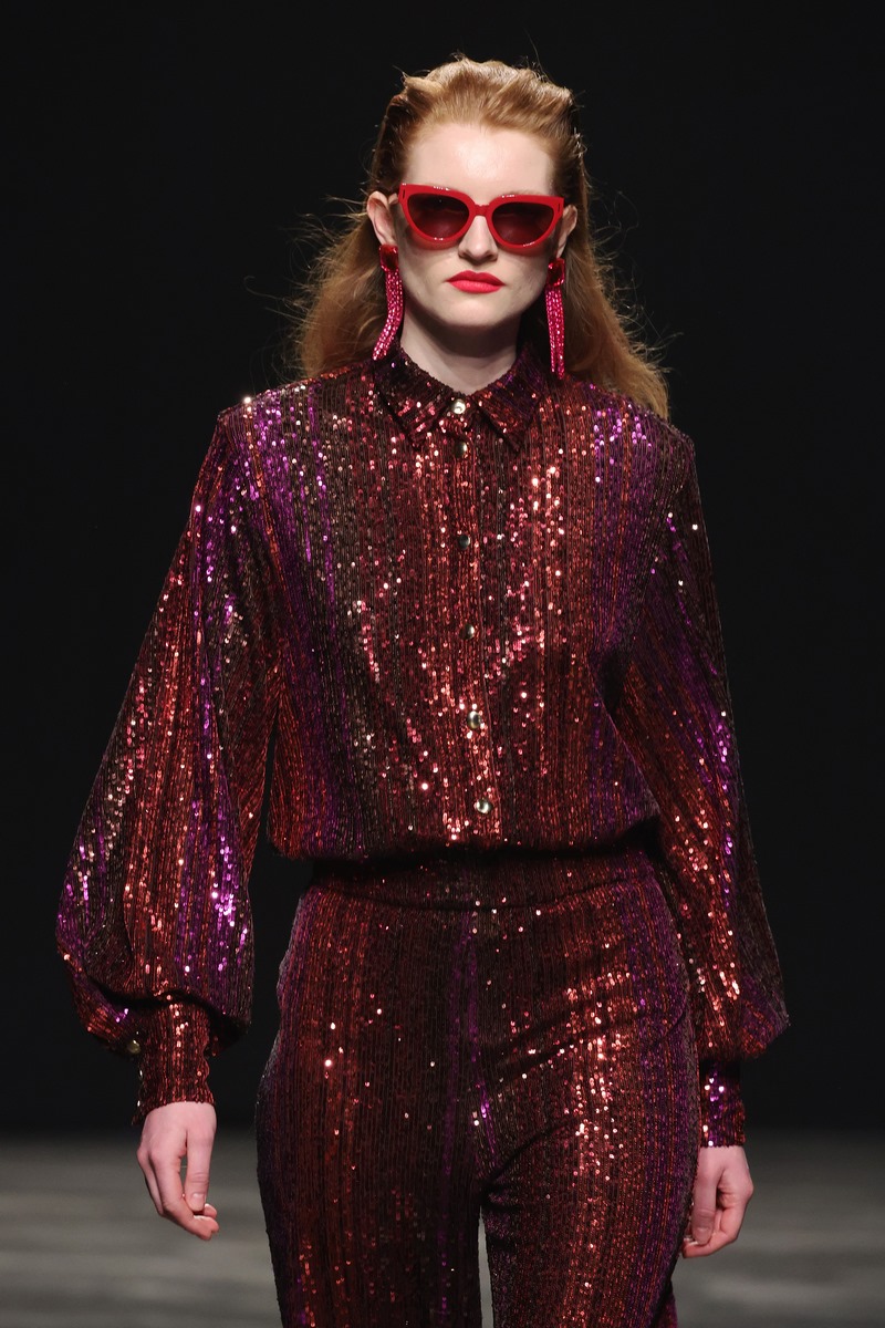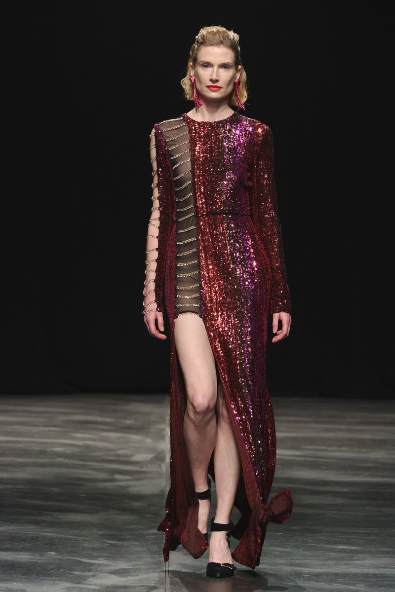 Zwischen glamourös schwingenden Kleidern entdecken unsere feinen Körperhärchen sinnlich weiche Materialien, die intensive Messages an unser Gehirn senden: Liebe – Heimat – Nostalgie – Romantik. Aber auch: Aufbruch – Neuanfang – Sehnsucht und Dankbarkeit. Oft setzen Berührungen Erinnerungen und Wünsche frei. Genau hierin ist Marcel Ostertag besonders gut: Er hört seinen Fans zu und setzt die Sehnsüchte und Wünsche in seine Sprache der Mode um. Kaftane, schwingende Kleider, Blusenkleider, Maxi Mäntel, Anzüge und eine schmeichelnd weiche StrickKollektion werden modern kombiniert und aufgebrochen durch neue Silhouetten und gewagte Kombinationen. Pailletten in Pink und Burgund funkeln um die Wette mit den Blütenprints aus kleinen Mini-Pailletten. Einige Looks strahlen im All-Over Print, bei anderen werden die Blüten in Maxigröße einzeln platziert. Eine Kollektion, die aufregend unaufgeregt ist und durch zeitlosen Glamour lange im Kleiderschrank erhalten bleibt. Ostertag liebt nachhaltige zeitlose Klassiker. Sie werden zu Lieblingstücken und bleiben lange Zeit in unserem Kosmos.