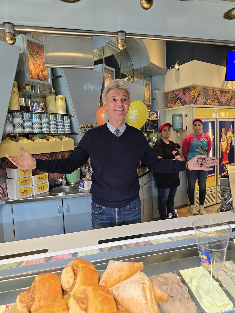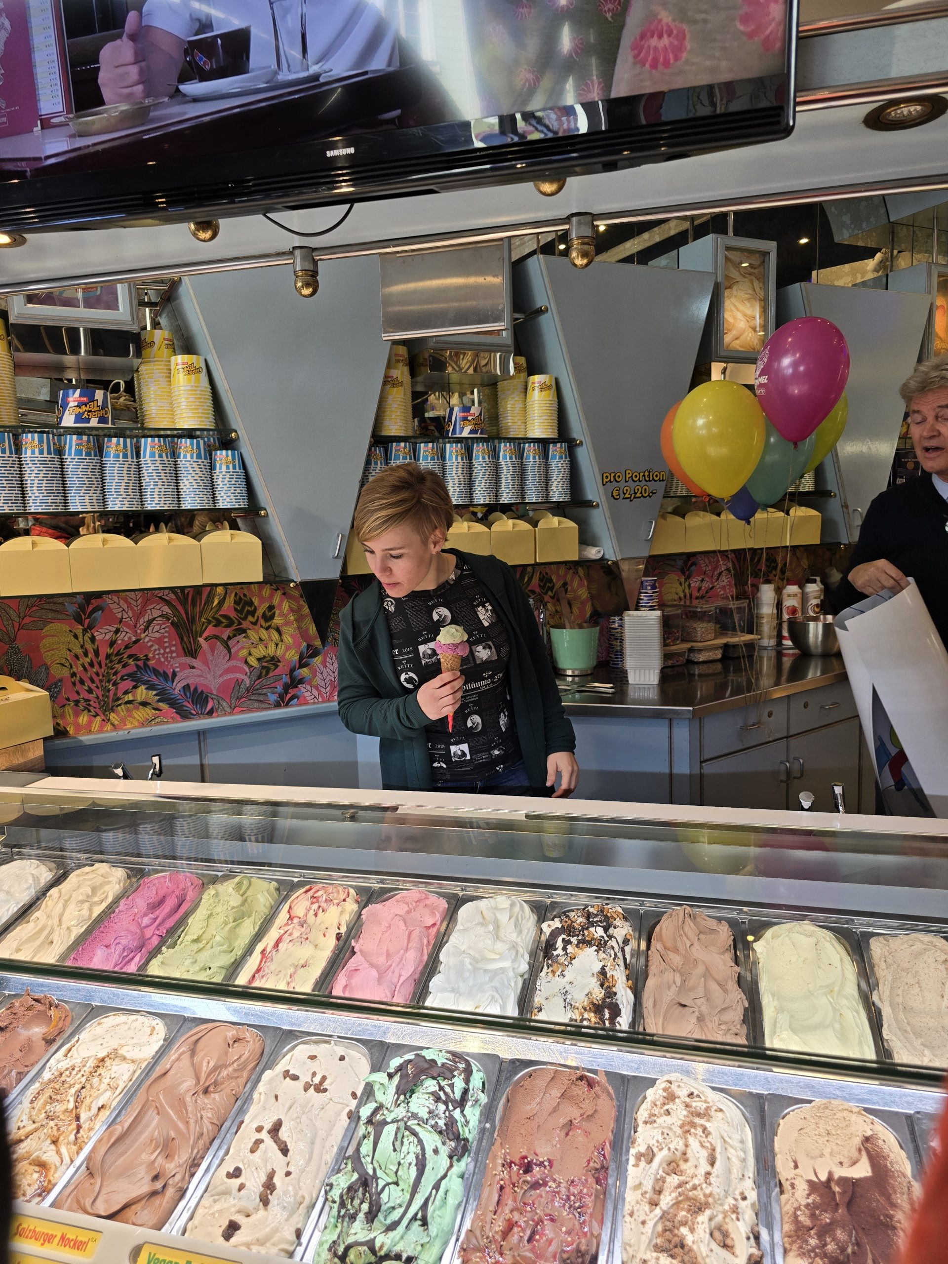 Heuer kostet eine Kugel Eis 2,40 Euro. „Leider ist alles wieder teurer geworden“, bedauert Charly Temmel, „aber ich hoffe, dass unsere Kunden uns verzeihen, denn dafür garantiere ich die größten Eiskugeln.“