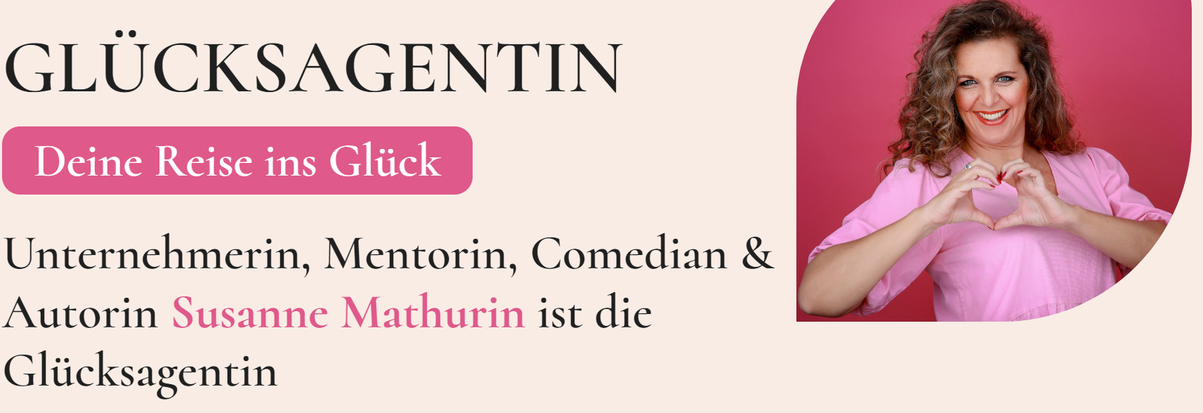 Glücksagentin – Reise ins Glück. Susanne Mathurin ist Glücksagentin und ihre Mission ist es, Menschen glücklicher und unbeschwerter zu machen. Anfang des Jahres gründete sie die Glücksakademie, ein Premium Mentoring Coaching Programm – und am 10. Juni geht sie damit auf die Bühne!
