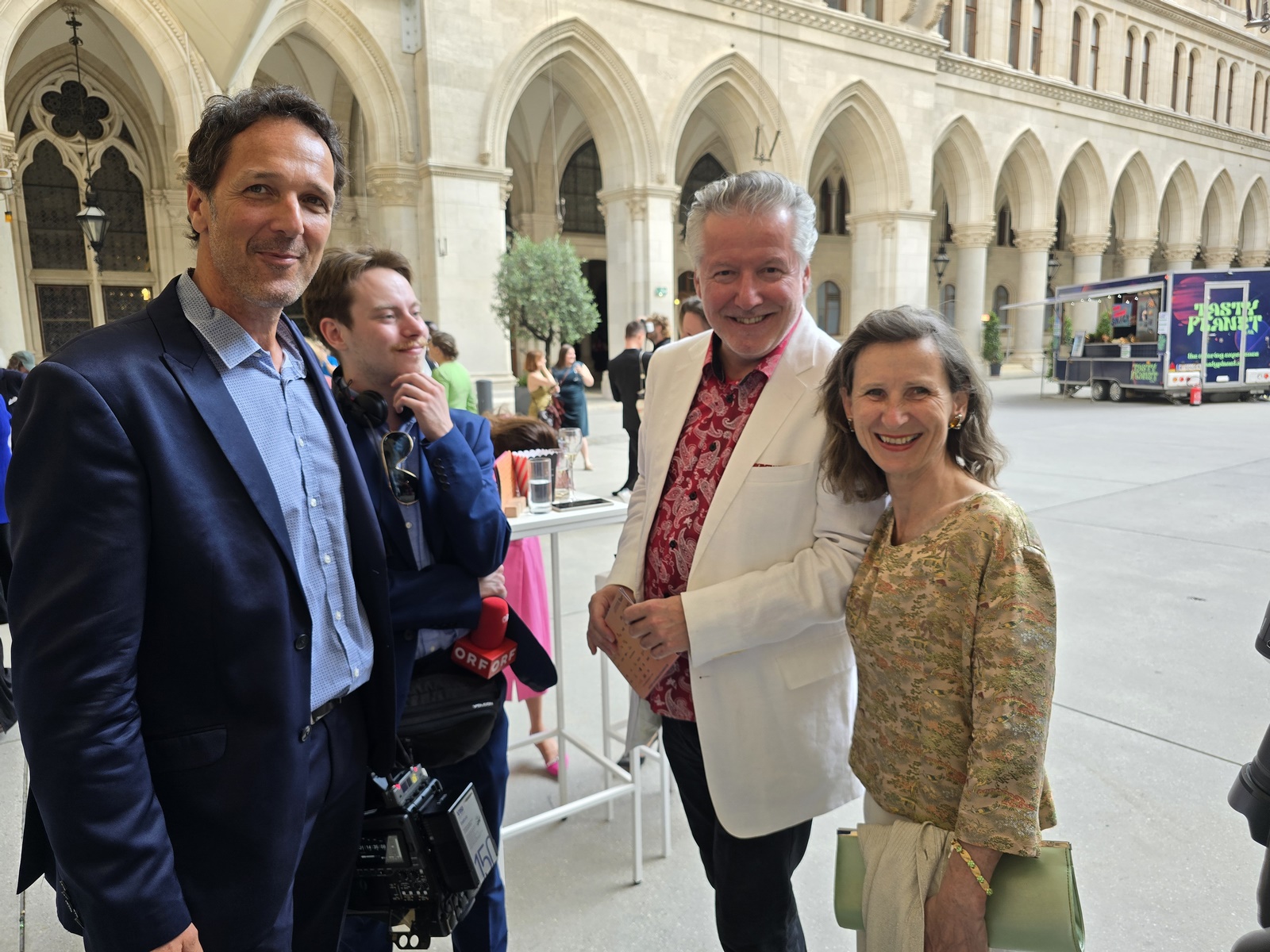 Kulturstadträtin Veronica Kaup-Hasler freute sich, als Gastgeberin des Abends zu fungieren. Wien sei eine Filmstadt, weil sich täglich eine Vielzahl von Filmschaffenden für „fantastische Qualität“ einsetzt. Das Rathaus sei immer offen für den österreichischen Film und das werde sich auch in Zukunft nicht ändern. Werner Kogler, Vizekanzler und Bundesminister für Kunst, Kultur, öffentlichen Dienst und Sport, betonte den Wert von Demokratie und Gesprächsbereitschaft.