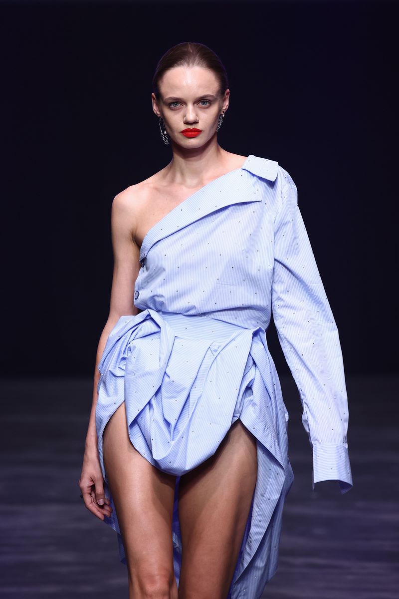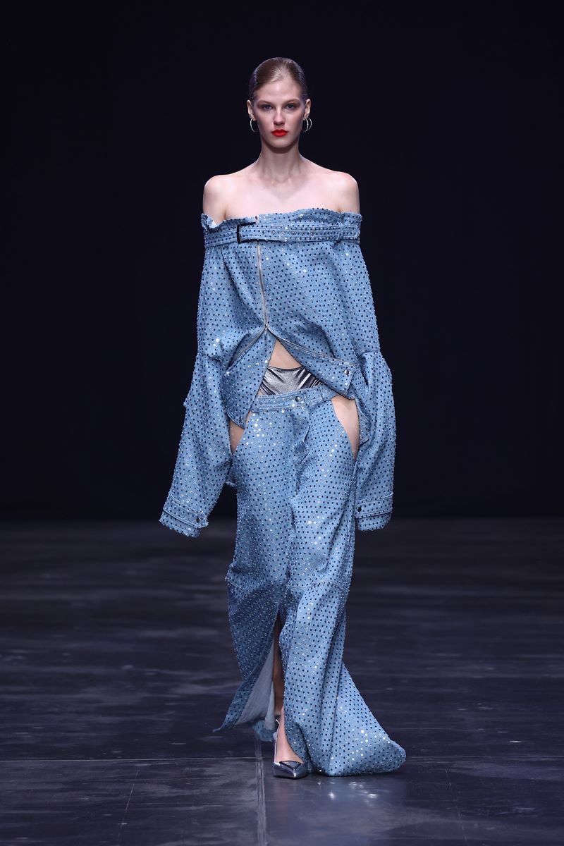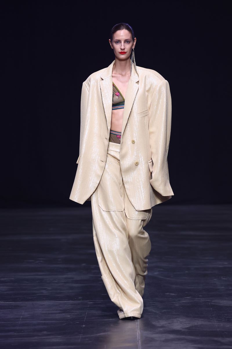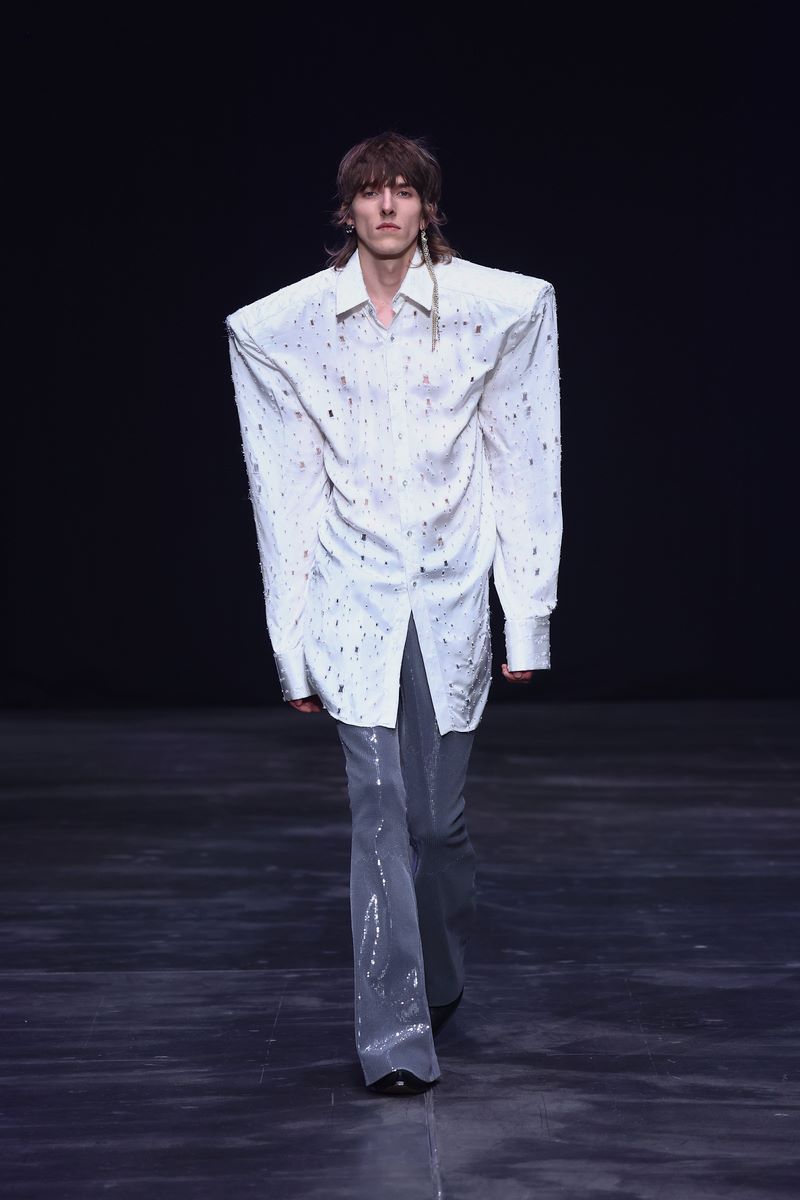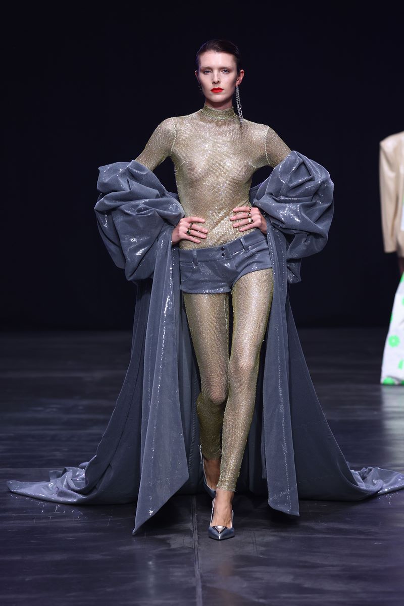 BERLIN, GERMANY – JULY 03: A model walks the runway at the COLLECTIVEFOUR Kilian Kerner Berlin show during Berlin Fashion Week SS25 at Uber Eats Music Hall on July 03, 2024 in Berlin, Germany. (Photo by Sebastian Reuter/Getty Images for COLLECTIVEFOUR Kilian Kerner Berlin)