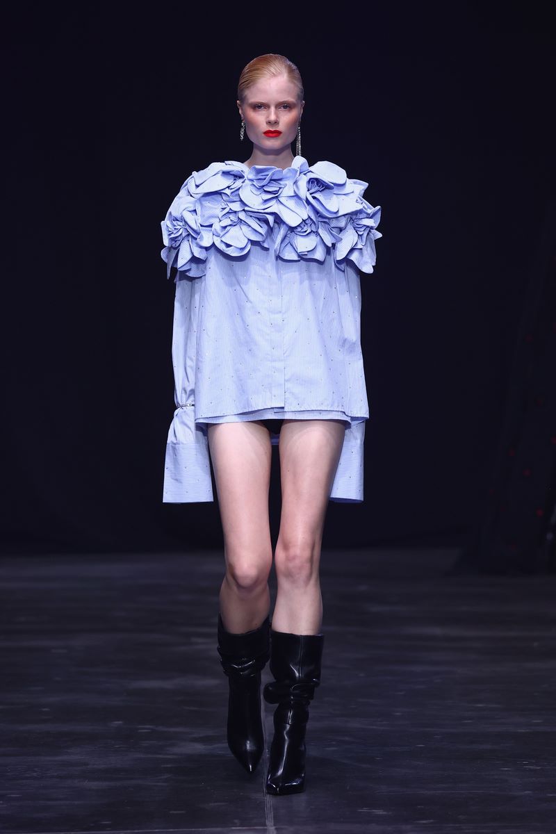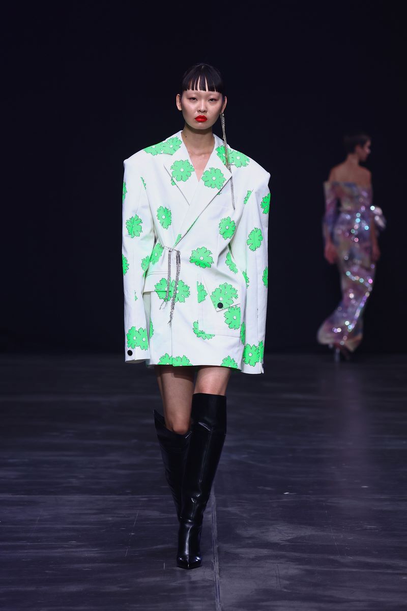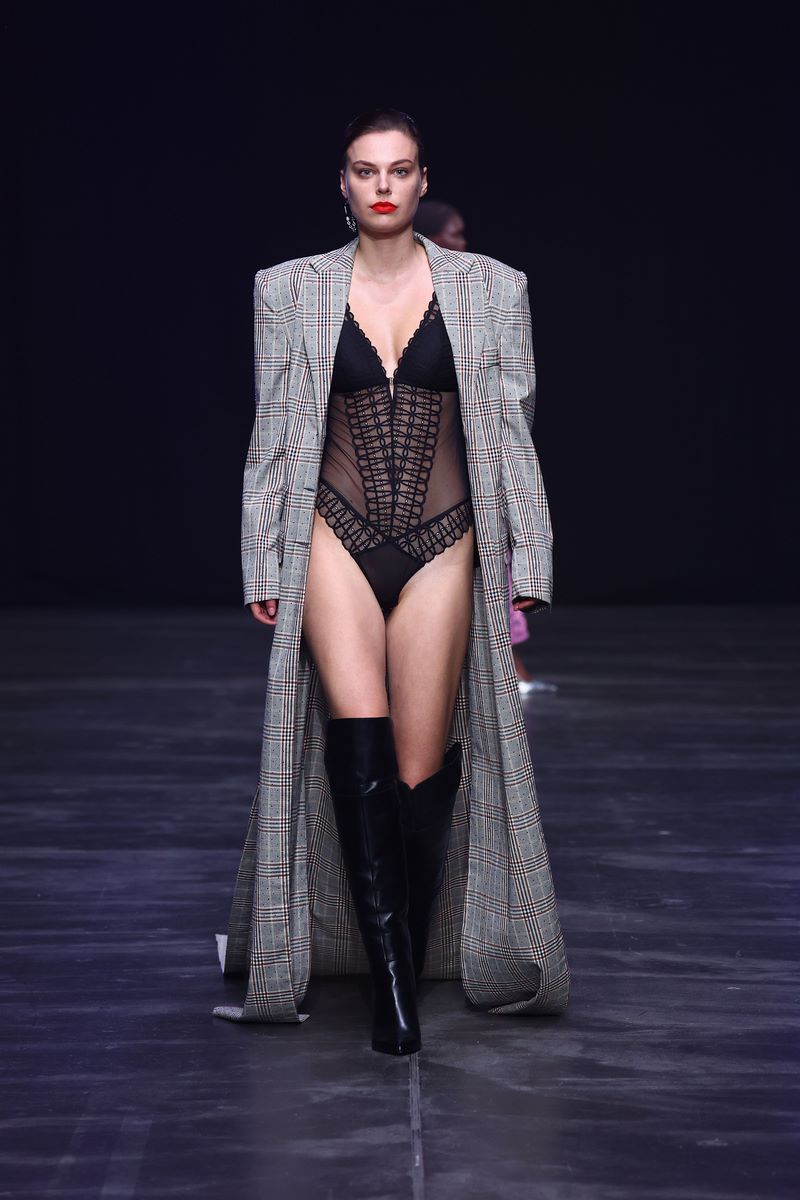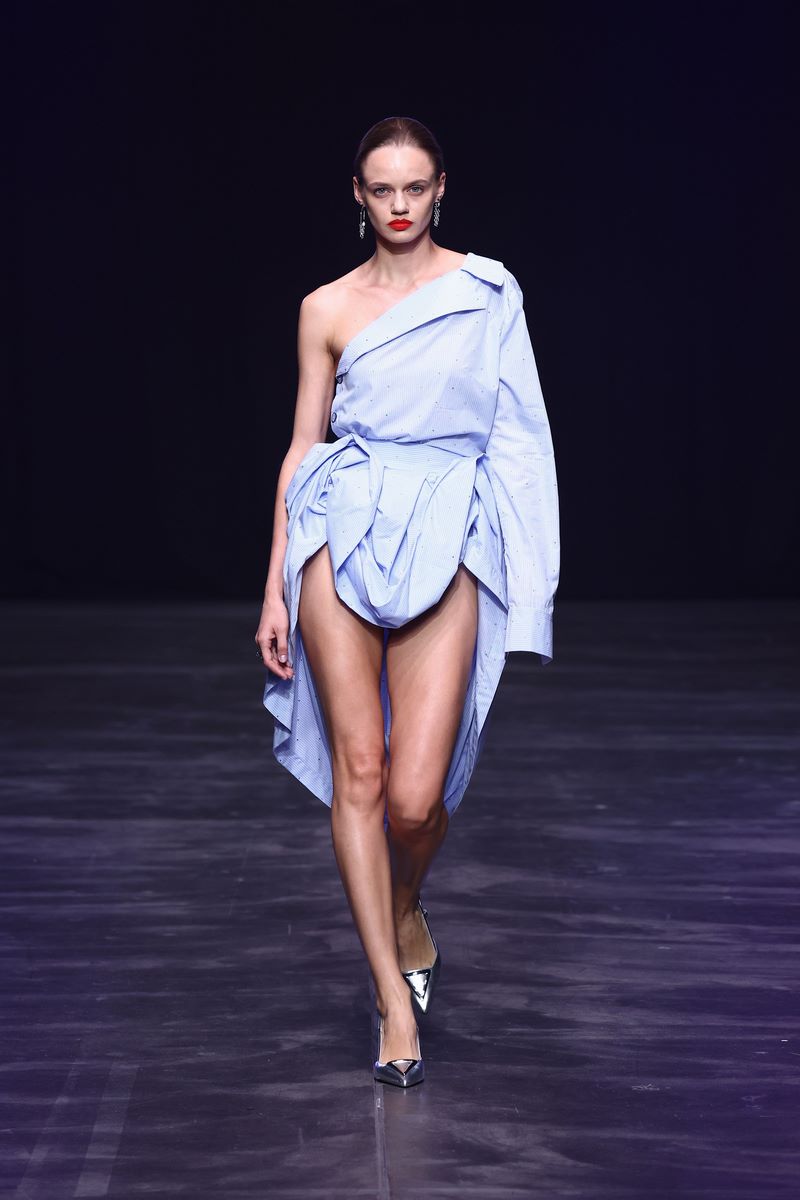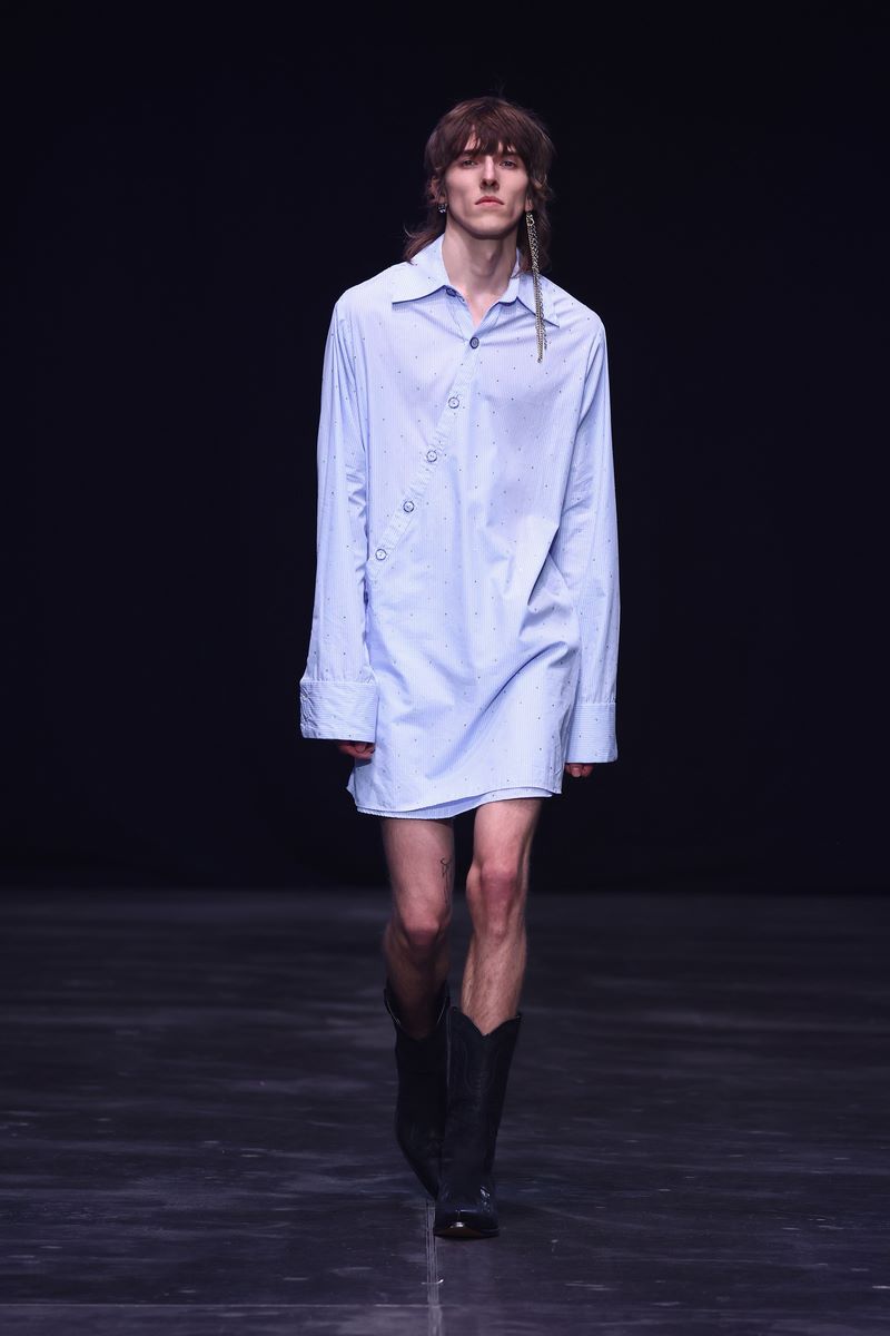BERLIN, GERMANY – JULY 03: A model walks the runway at the COLLECTIVEFOUR Kilian Kerner Berlin show during Berlin Fashion Week SS25 at Uber Eats Music Hall on July 03, 2024 in Berlin, Germany. (Photo by Sebastian Reuter/Getty Images for COLLECTIVEFOUR Kilian Kerner Berlin)