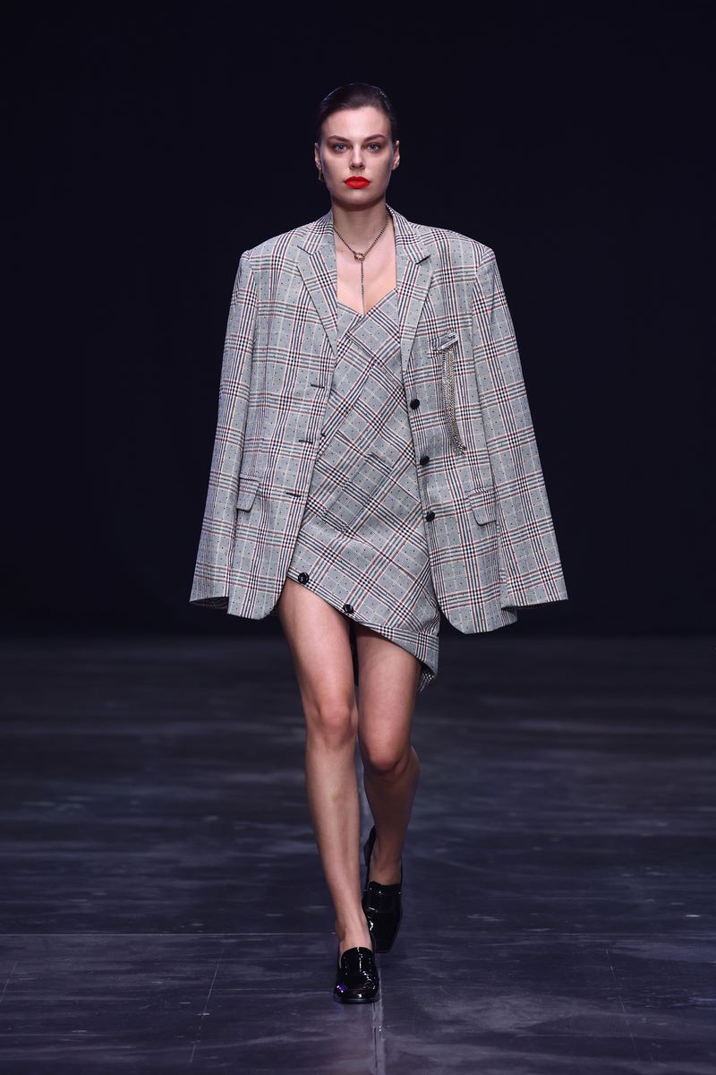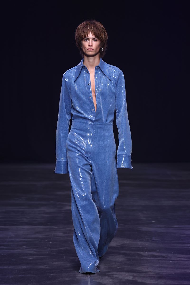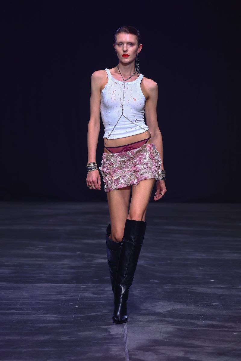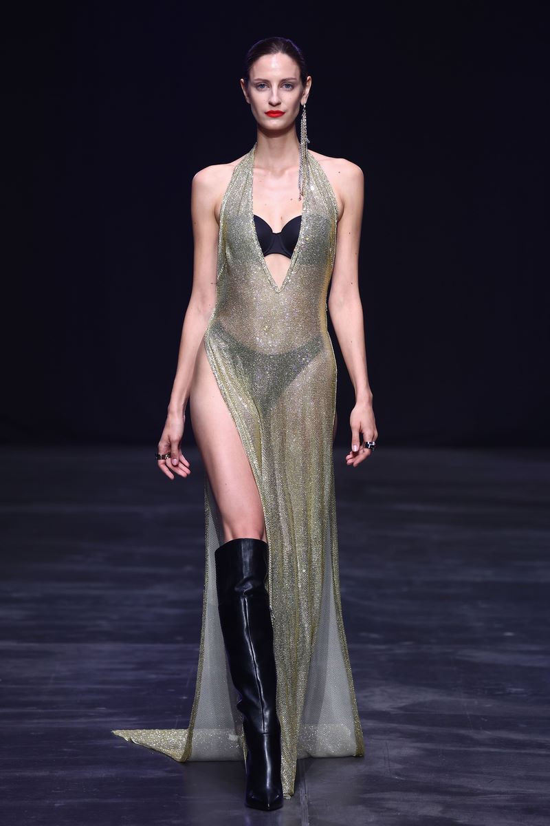 Die Kollektion für Frühjahr/Sommer 2025 umfasst insgesamt 54 Looks. Darin trifft Eleganz auf sportliche Looks und Abendmode auf Daywear. Sexyness und Leichtigkeit stehen im Kontrast zu Härte und Kraft – und ergeben den typischen Mix, für den der Designer bekannt ist.