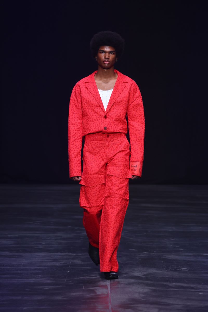 Mit der Kollektion „Herz im Kopf“ widmet sich Kilian Kerner dem Thema Liebeskummer. Ein Schmerz, der oft unterschätzt wird. Nicht richtig ernstgenommen, sondern mit klugen Ratschlägen abgetan. Kennen wir alle. Die Show begann, passend dazu, mit einem eigens für die Modenschau gezeichneten Comic. Er erzählt die Geschichte von einem Paar, das sich trennt, obwohl es sich liebt. Beide gehen durch einen tiefen Schmerz und finden am Ende wieder zusammen.