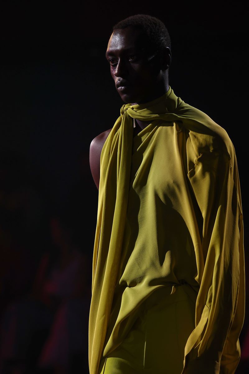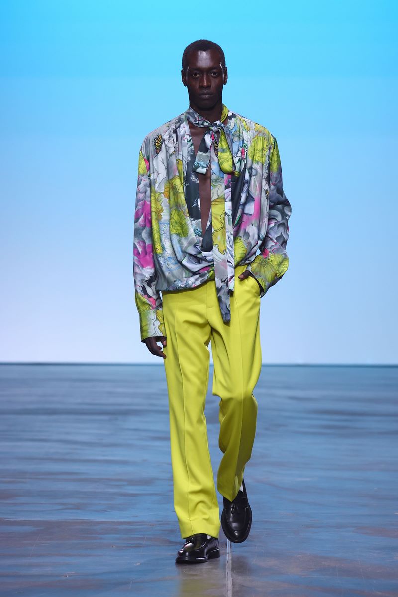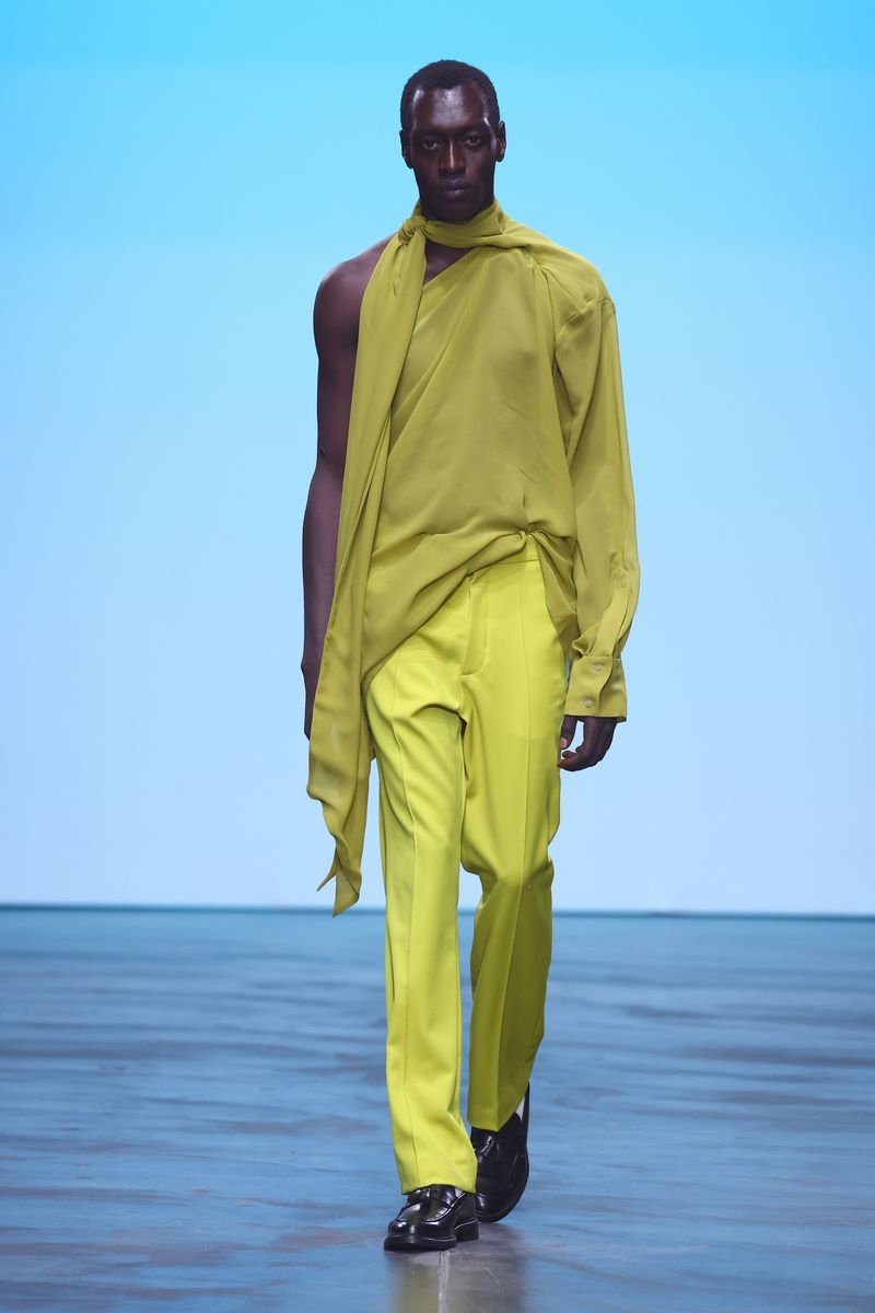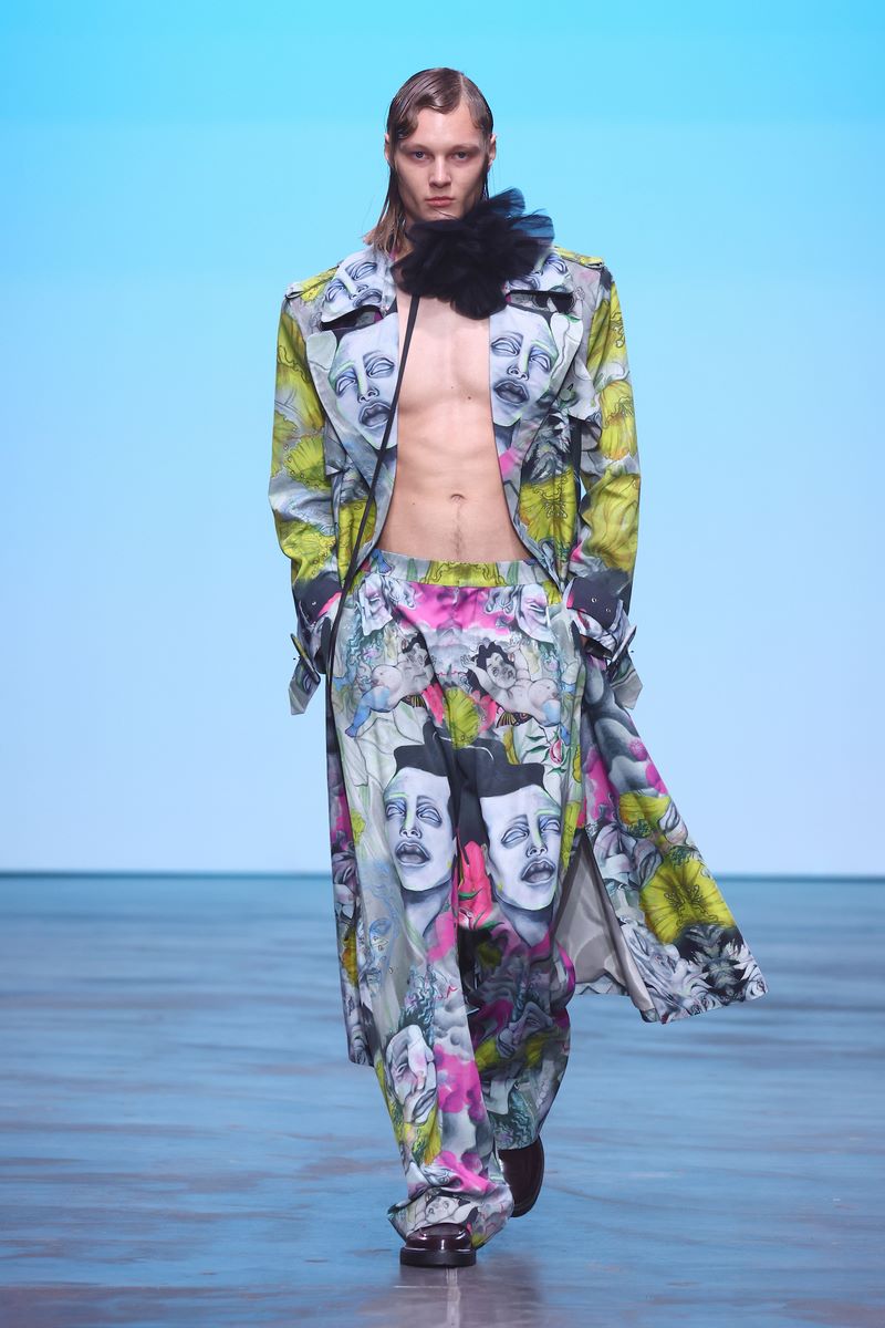 BERLIN, GERMANY – JULY 03: A model walks the runway at the COLLECTIVEFOUR Danny Reinke show during Berlin Fashion Week SS25 at Uber Eats Music Hall on July 03, 2024 in Berlin, Germany. (Photo by Sebastian Reuter/Getty Images for COLLECTIVEFOUR Danny Reinke)