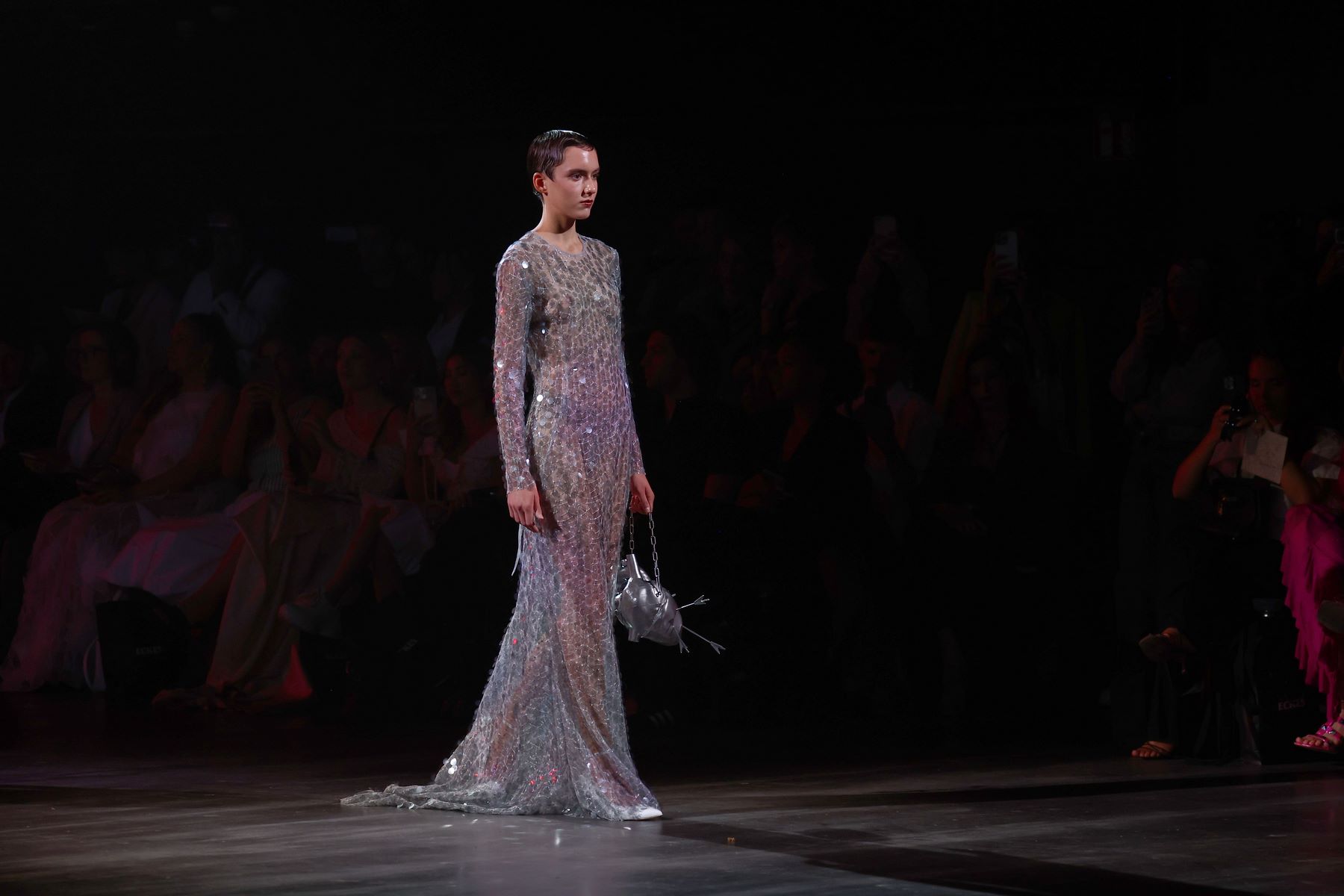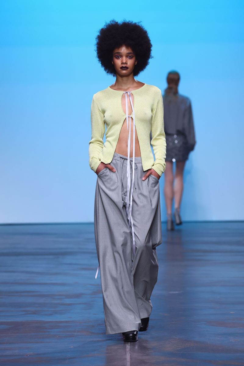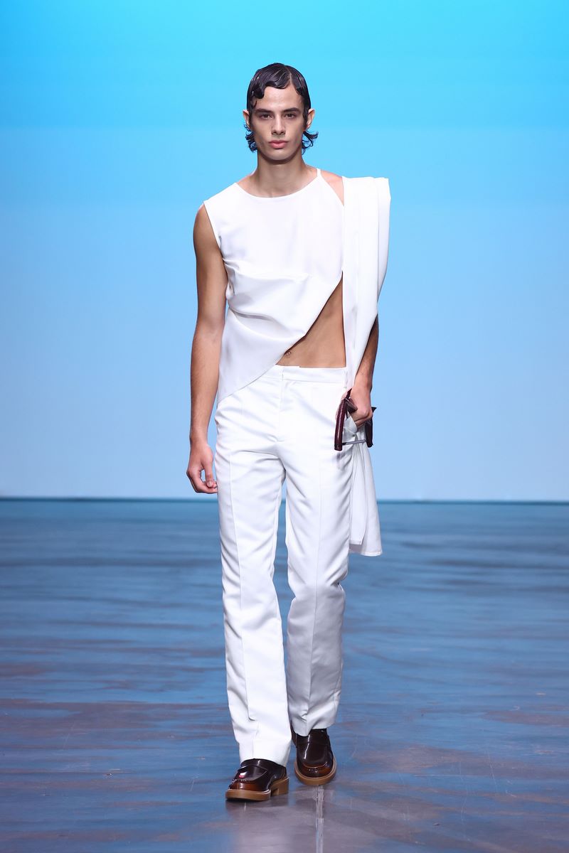BERLIN, GERMANY – JULY 03: A model, fashion detail, walks the runway at the COLLECTIVEFOUR Danny Reinke show during Berlin Fashion Week SS25 at Uber Eats Music Hall on July 03, 2024 in Berlin, Germany. (Photo by Sebastian Reuter/Getty Images for COLLECTIVEFOUR Danny Reinke)