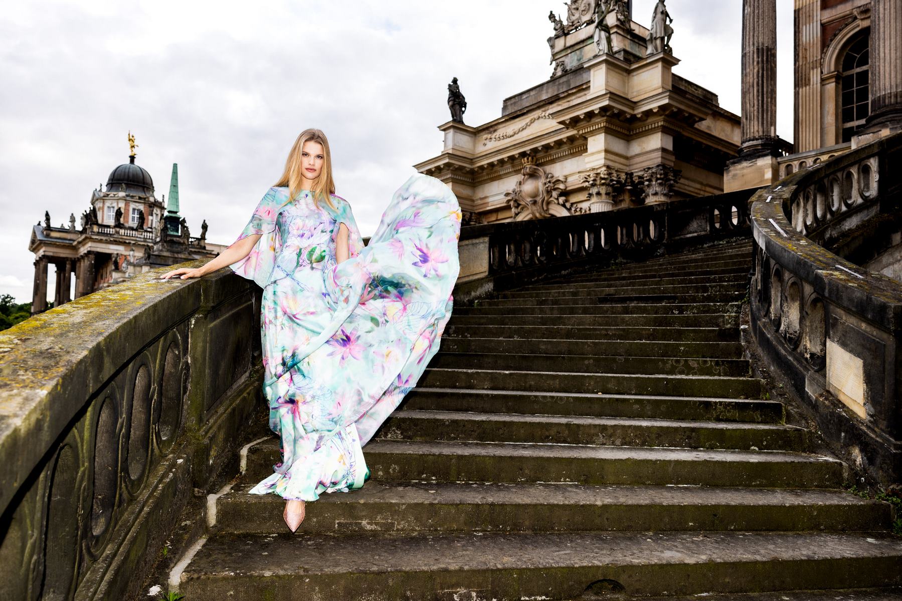 „Marc Cain ist während der Berliner Fashion Week immer für eine Überraschung gut, so auch dieses Mal mit der Wahl unserer Location. Die Kolonnaden am Neuen Palais im Park Sanssouci