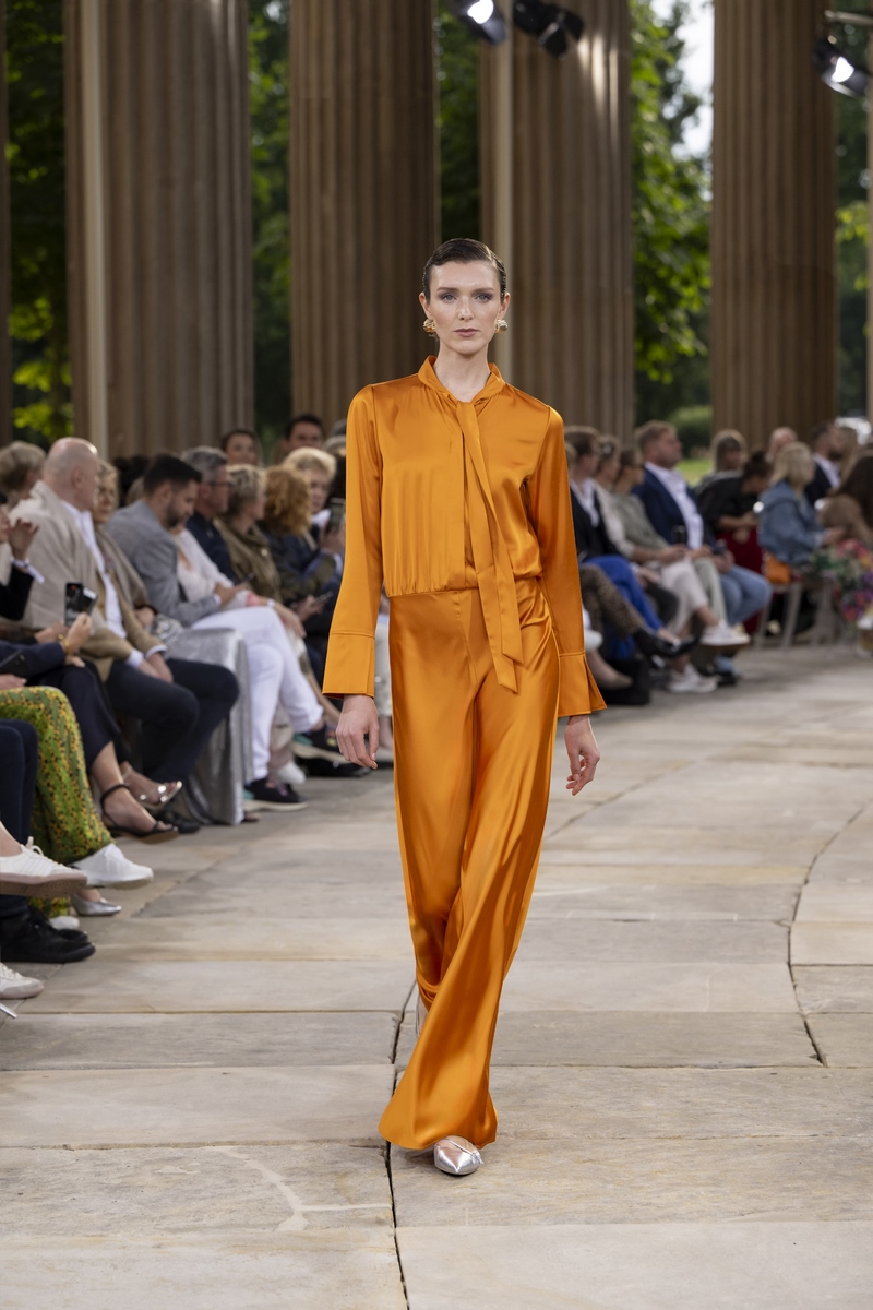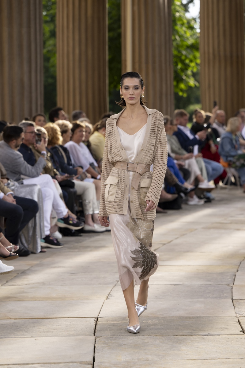 „You can always count on Marc Cain to provide a surprise during Berlin Fashion Week, and this time was no exception with our choice of location. The colonnades at the New Palace in Sanssouci Park were built by Frederick the Great in the 18th century. The so -called Mopke area around the colonnades is the oldest preserved, continuous clinker floor area in Europe. Seeing our collections presented in front of this historic backdrop is also a very special highlight for me personally,“ enthused Helmut Schlotterer, Chairman of the Board and Founder of Marc Cain.