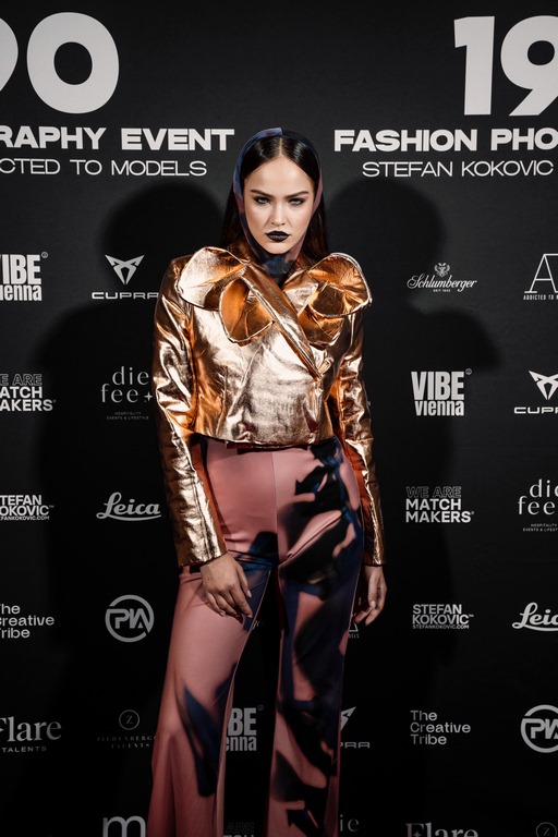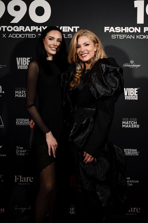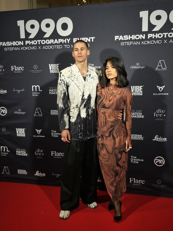 Kokovics Werke, inspiriert von den legendären Supermodels und Fotografen dieser Ära, ließen den kreativen Geist der 90er neu aufleben. Unter den geladenen Gästen waren prominente Persönlichkeiten wie Topmodel Nadine Mirada, Count Basic-Mastermind Peter Legat mit Frau Daniela, GNTM-Gewinnerin 2022 Lou-Anne Gleissenebner mit Mama und GNTM-Finalistin 2022 Martina Gleissenebner-Teskey – beide in Callisti gewandet.
