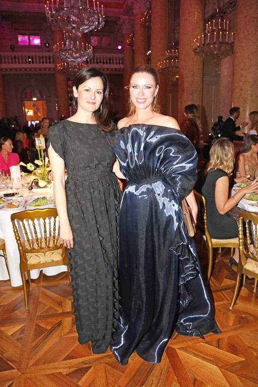 Durch den Abend führte die vielseitige Fernsehmoderatorin, Schauspielerin und Synchronsprecherin Janin Ullmann. Im Bild mit Topmodel Nadine Mirada. (Foto Philipp Enders)