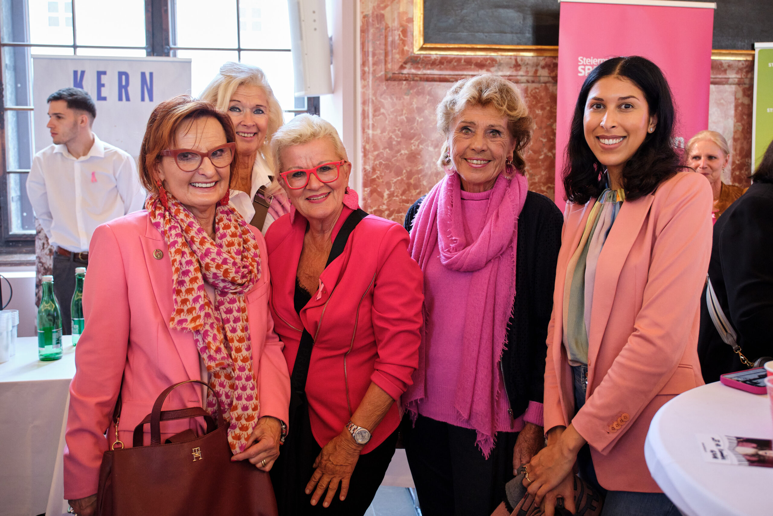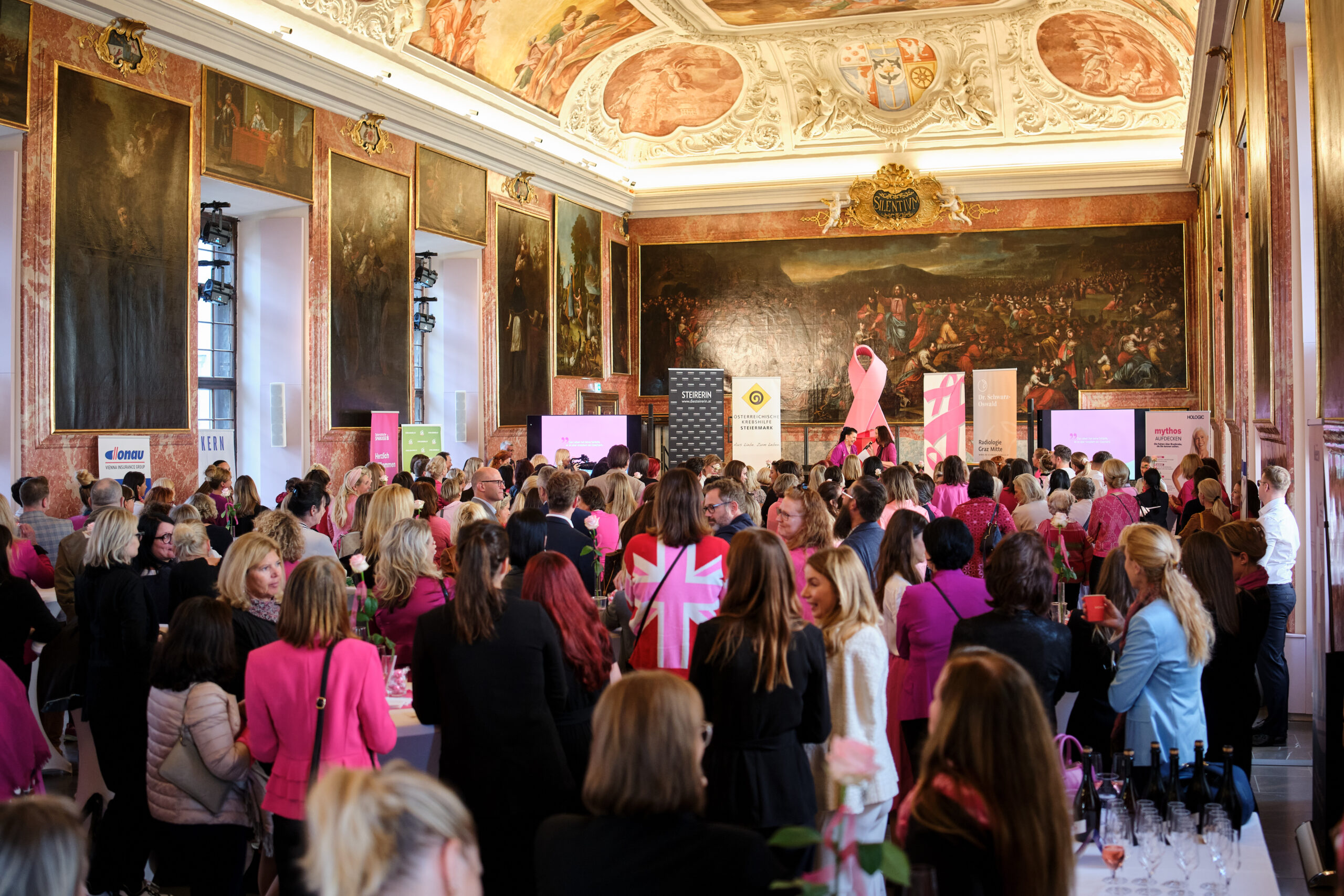Gemeinsam ein Zeichen setzen! Die Österreichische Krebshilfe Steiermark lud gemeinsam mit der STEIRERIN und Dr. Schwarz-Oswald zum 5. Pink Ribbon Breakfast in den Grazer Minoritensaal – und der Zustrom war immens. Über 200 Gäste kamen und erinnerten an die Bedeutung der Brustgesundheit und die Wichtigkeit der Vorsorge. Denn Brustkrebs ist vielfach heilbar – wenn er frühzeitig entdeckt wird!