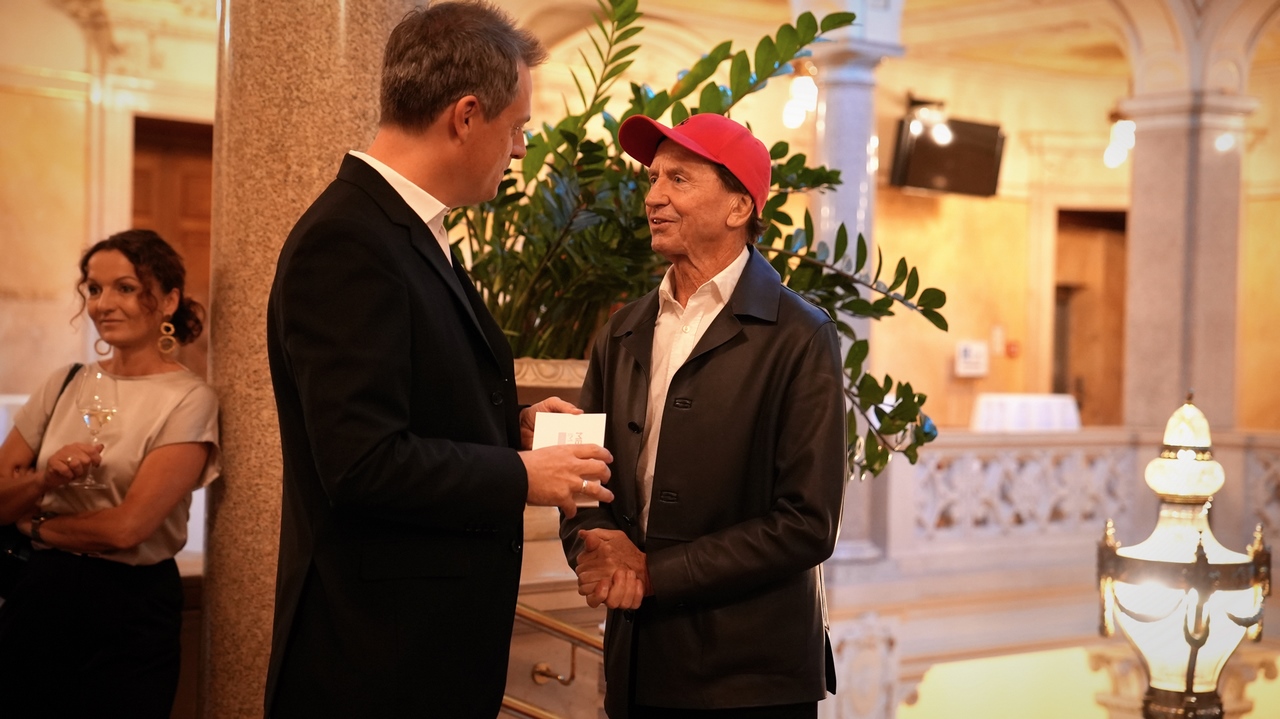 Großes Beitragsfoto: Autor Markus Leyacker-Schatzl präsentierte kürzlich gemeinsam mit Schauspiellegende Dieter Hallervorden sein neues Buch „Charlie Chaplin – Erfolgsgeheimnisse einer Legende“ . (Foto Susanne Mostoegl)