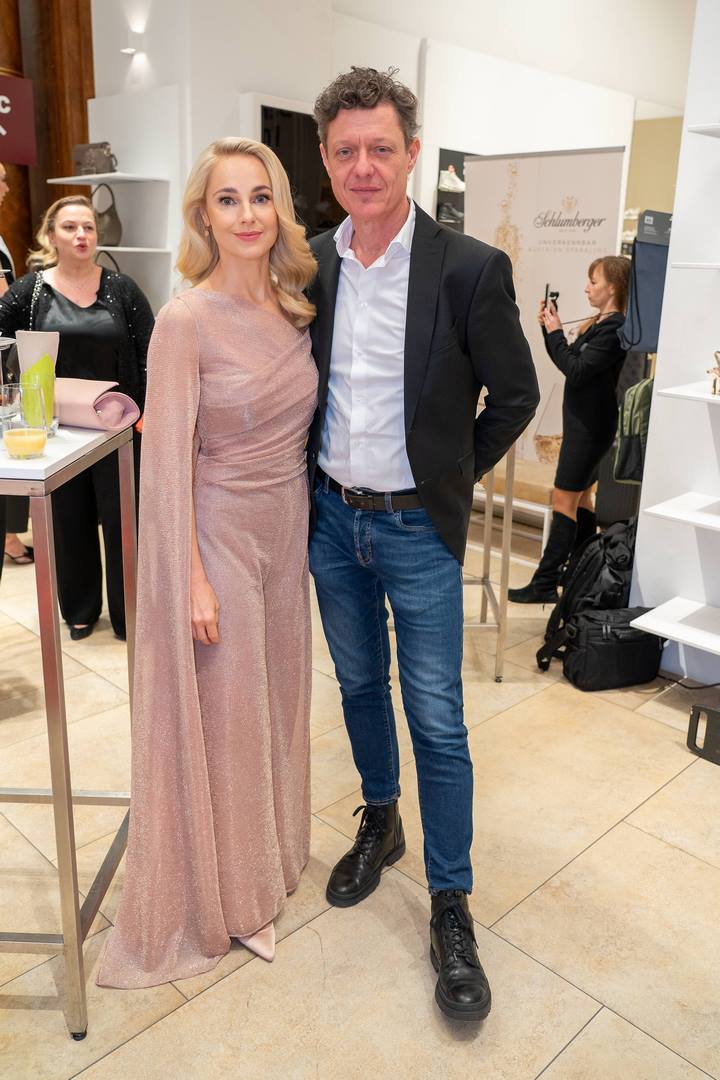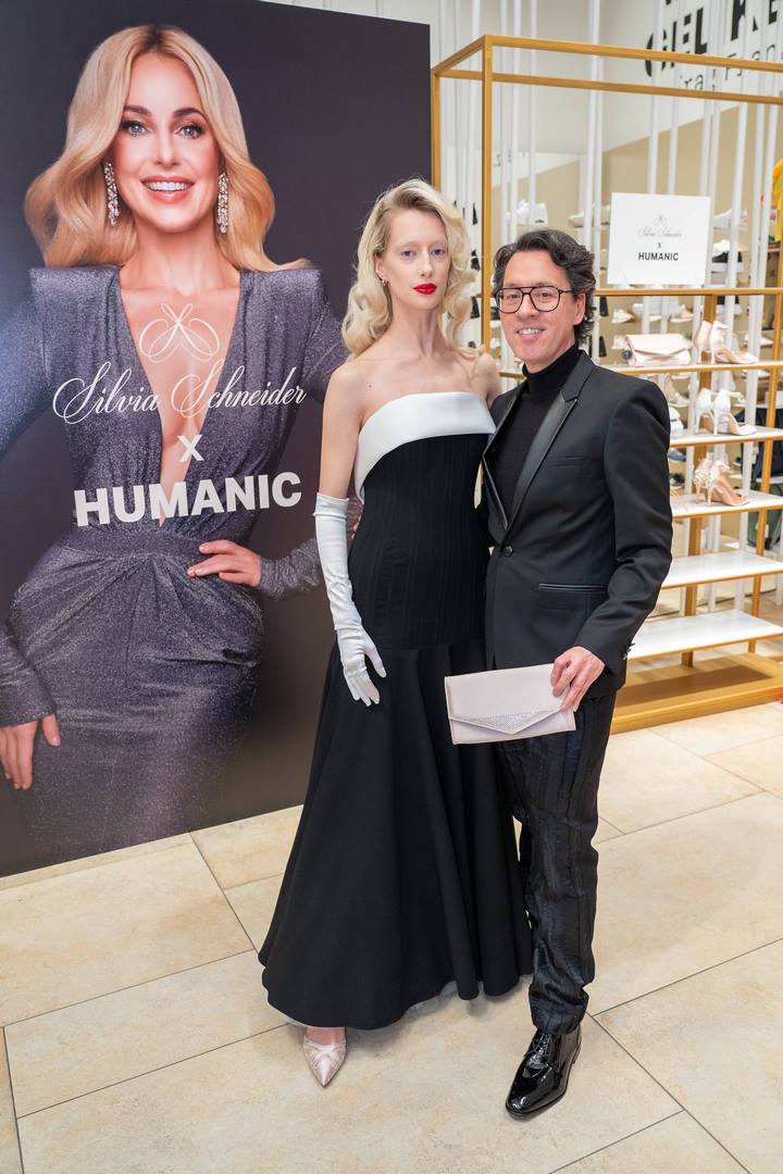 Ein besonderes Highlight des Abends war die Präsentation der exklusiven Ballschuhkollektion von Silvia Schneider, die gemeinsam mit HUMANIC designt wurde. Satin-Pumps in Nude, verziert mit einer opulenten Strass-Brosche, sorgen für beeindruckende Momente auf jedem Tanzparkett. „Der Wiener Opernball ist ein Ort