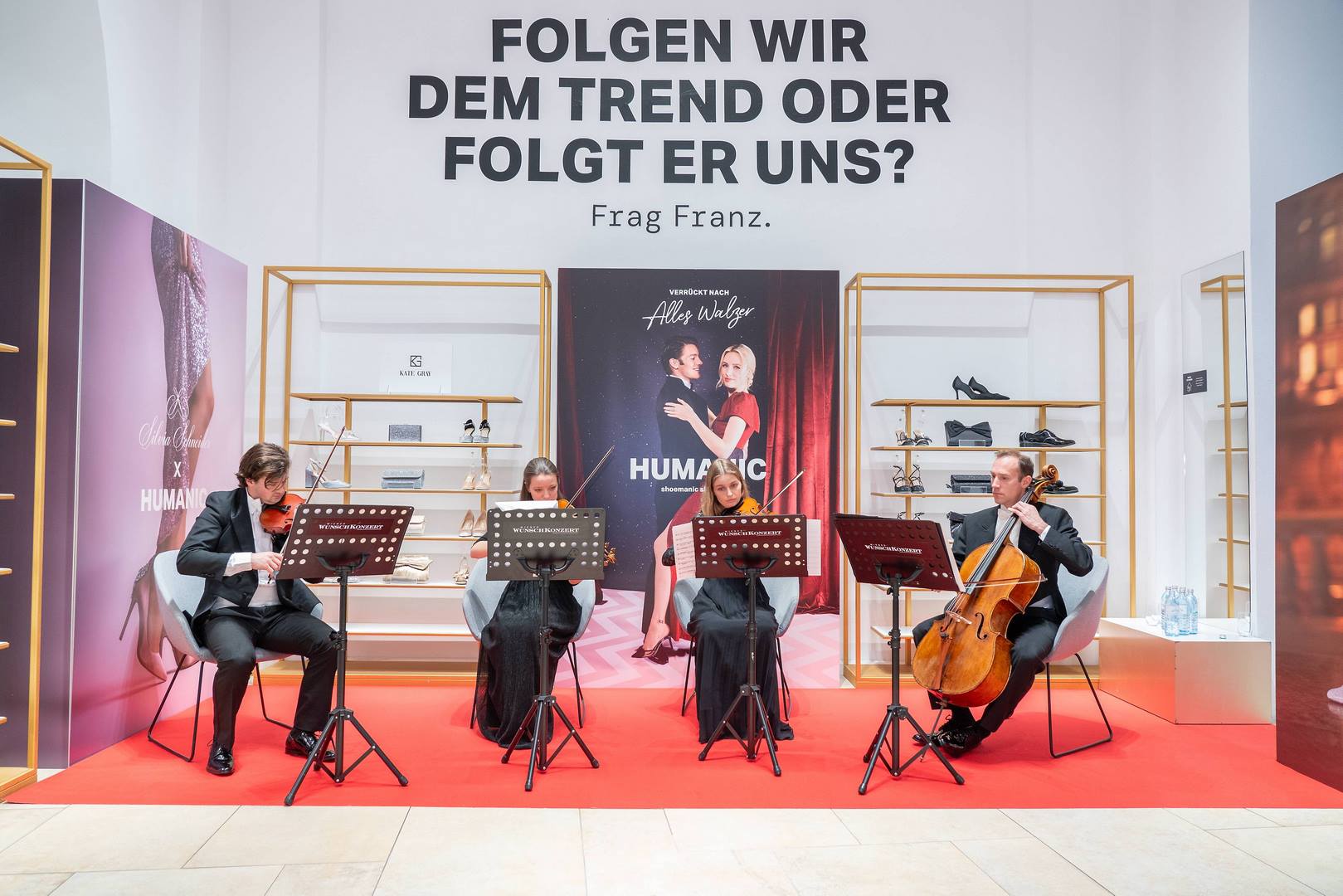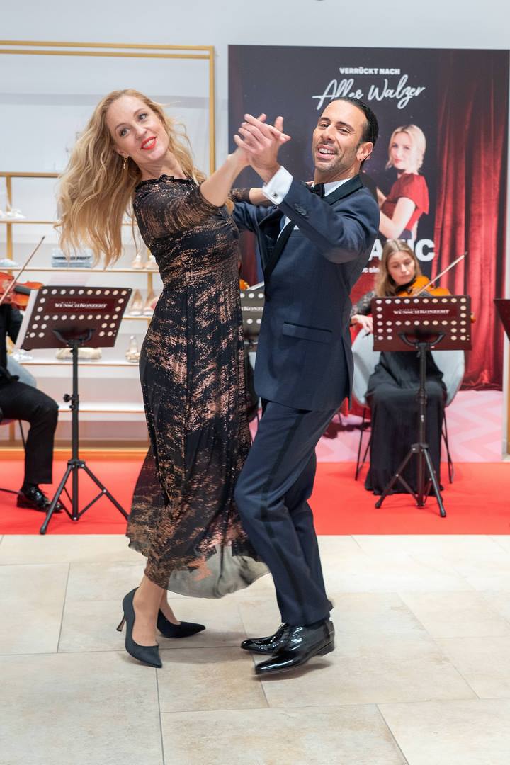 Anschließend wurden die Schuhe von den Jurymitgliedern selbst getestet: Zu den Walzerklängen, gespielt vom Wiener Wunschkonzert Ensemble, aus der Feder von Johann Strauss – darunter Klassiker wie „An der schönen blauen Donau“ –