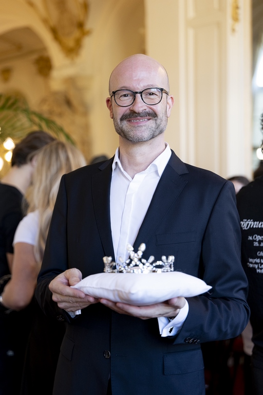 „Was wäre die Opernredoute ohne diesen funkelnden Krönchen? Es ist für mich eine besondere Freude, dass diese Zusammenarbeit sowohl beim Eröffnungskomitee als auch bei mir persönlich so viele positive Emotionen auslöst. Das Krönchen, gestaltet von Eva Poleschinski und gefertigt von Klaus Weikhard, und die dazugehörigen Manschettenknöpfe sind die Essenz der zahlreichen kreativen Momente, die die Opernredoute ausmachen.“