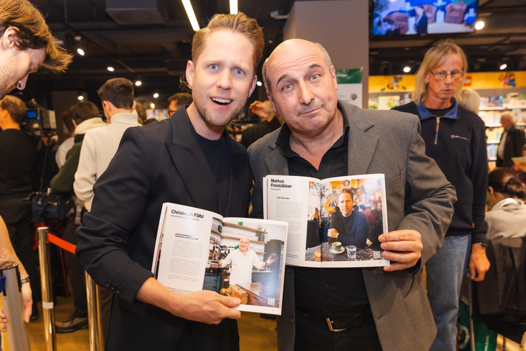 Kürzlich luden Buchautor und Manager Clemens Trischler und Co-Autorin Andrea Buday zur Buchpräsentation „Wiener Melange – Stars & ihre Lieblingscafés. Eine Hommage“ in die bis auf den letzten Platz gefüllte Thalia-Buchhandlung Wien Mitte.