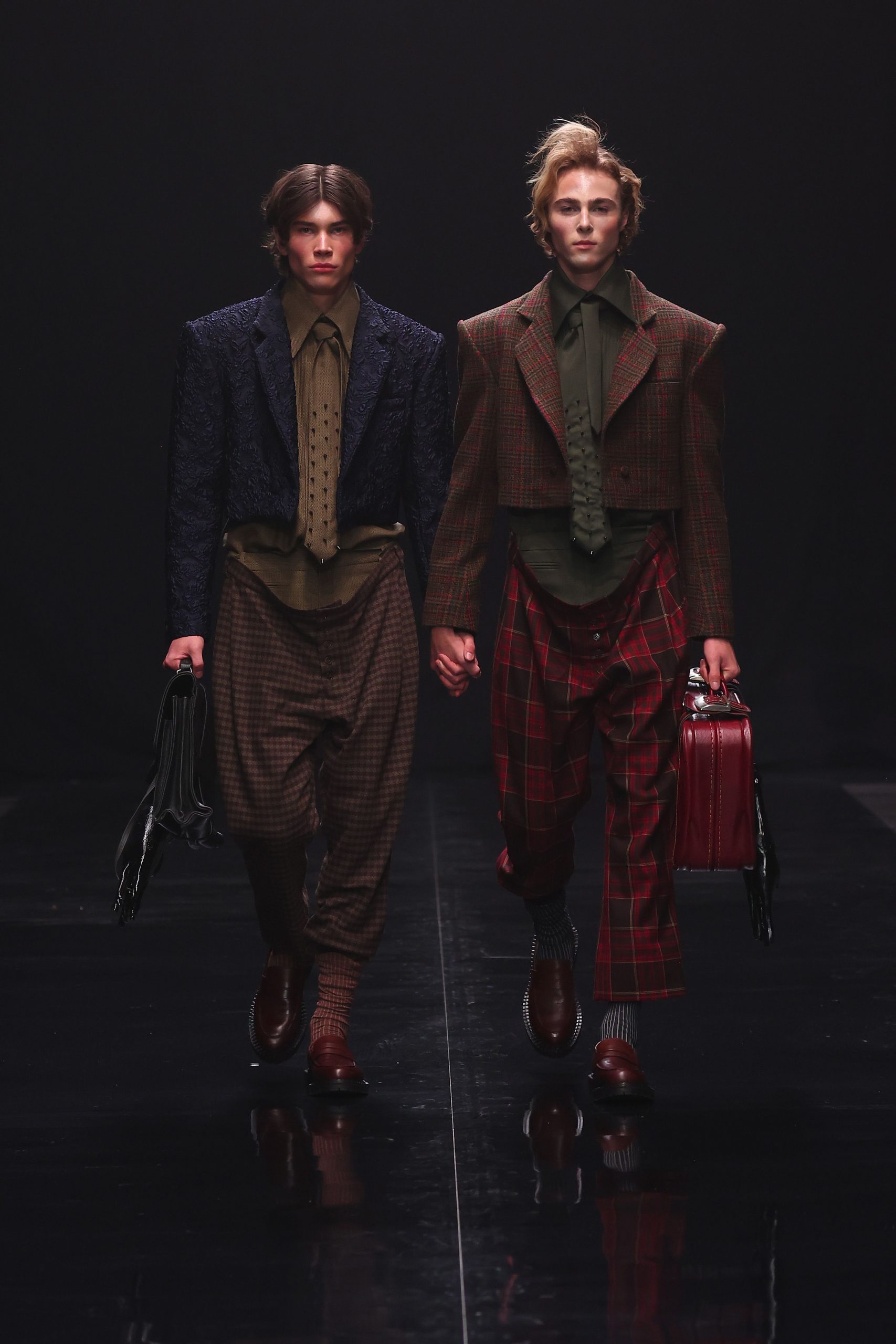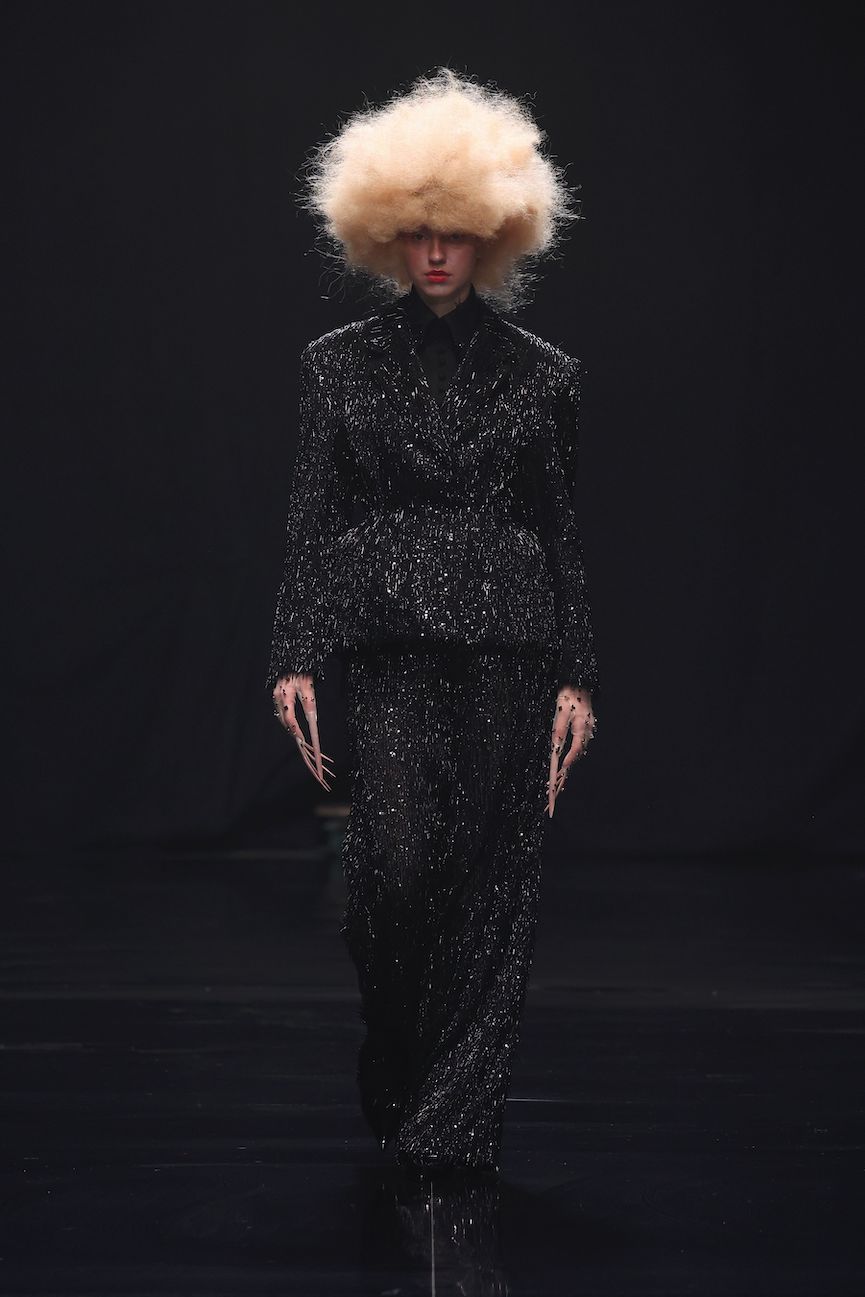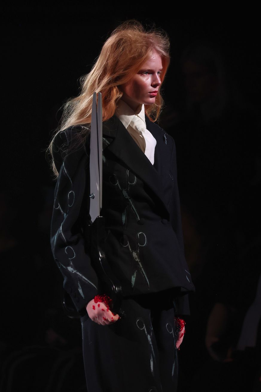 Danny Reinke präsentierte mit seiner neuen Prêt-à-Couture-Kollektion für Herbst/Winter 2025/26 ein Werk, das nicht nur modisch, sondern auch gesellschaftlich Akzente setzt. „90 Seconds to Midnight“ verbindet die düsteren Erzählungen von Heinrich Hoffmanns Struwwelpeter mit der wissenschaftlichen Metapher der Doomsday Clock, ein Symbol für die Wahrscheinlichkeit einer von Menschen verursachten globalen Katastrophe. Diese Weltuntergangsuhr steht aktuell auf nur 90 Sekunden vor Mitternacht. Ein Weckruf, der zu Renitenz, Widerstandskraft und Entschlossenheit mahnt – Haupteigenschaften, die Heinrich Hoffmann seine:n Protagonist:innen zuschreibt – um uns vor der Apokalypse zu bewahren.