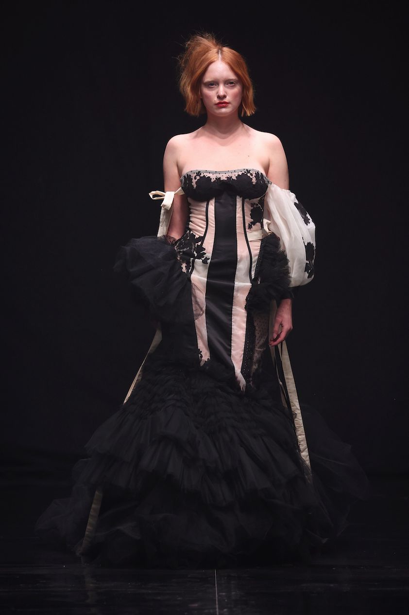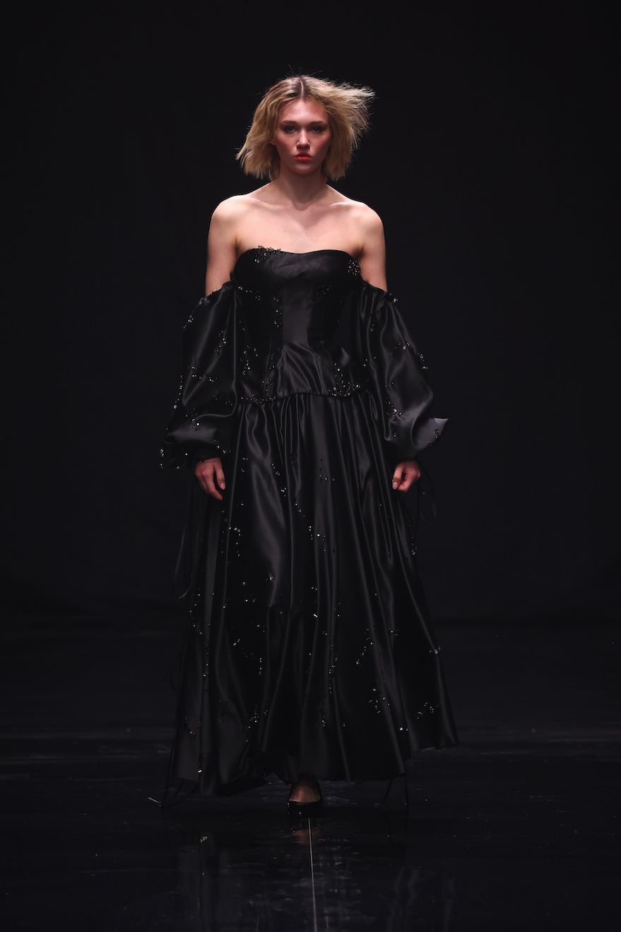 Die Kollektion deutet die rebellischen Facetten des Struwwelpeters um und setzt ein kraftvolles Zeichen für Neuanfang, Freiheit und Wirksamkeit. Mit einer einzigartigen Verbindung von eleganter Couture Ästhetik mit markanten Punk-Elementen der 80er- Jahre spiegelt sie den Geist der Rebellion wider: unangepasst, furchtlos und voller Energie. „90 Seconds to Midnight“ ist eine eindrucksvolle Fusion aus historischem Einfluss, düsterer Symbolik und rebellischem Design. Sie schöpft Inspiration aus der Biedermeierzeit und bricht dabei bewusst mit ihren konservativen und zurückhaltenden Markmalen, um einen modernen Aufruf zur Selbstbefreiung und Veränderung zu formulieren.
