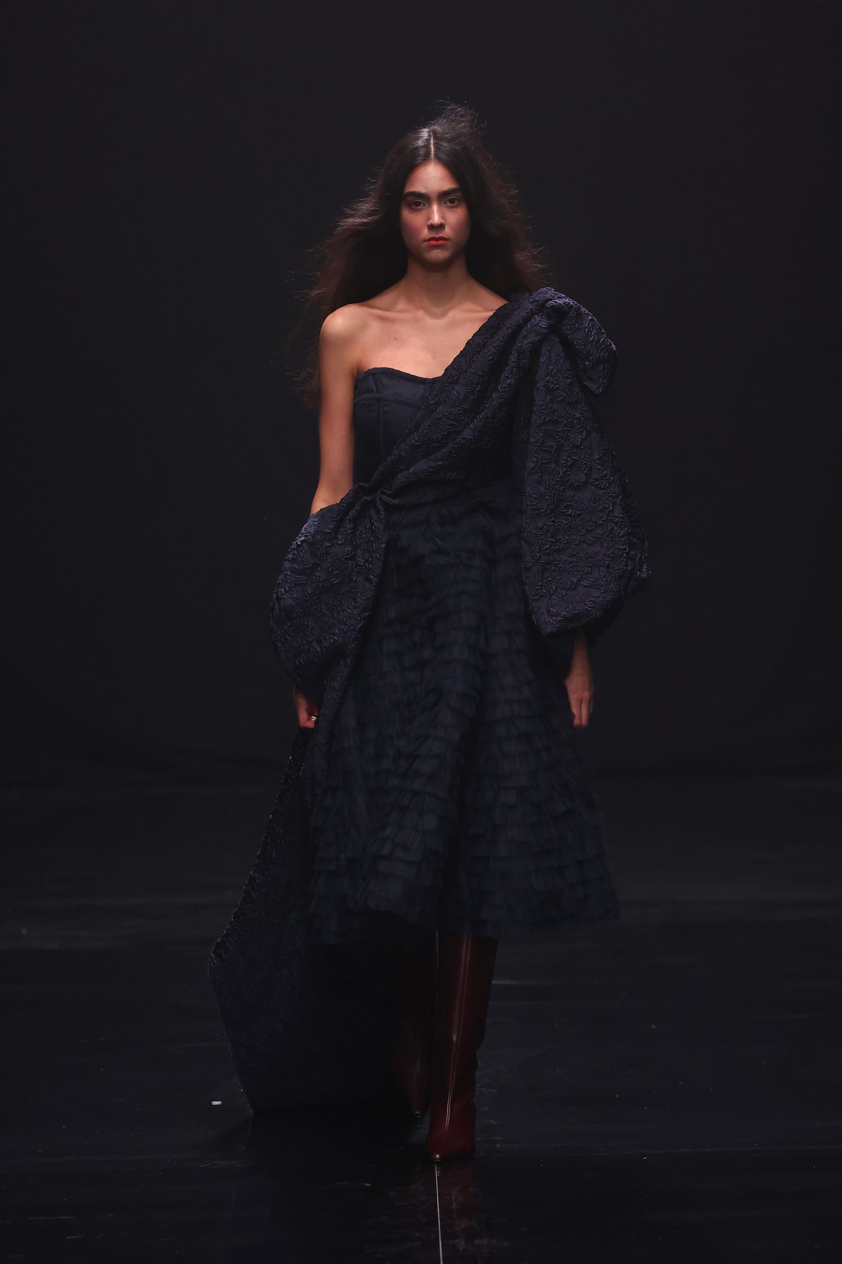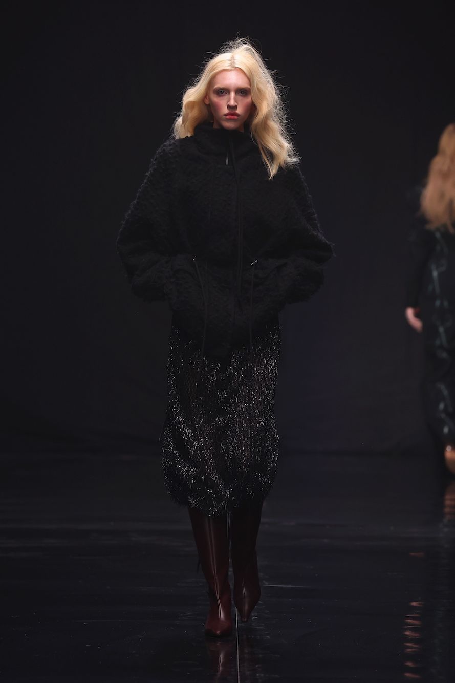 BERLIN, GERMANY – JANUARY 31: A model walks the runway at the COLLECTIVEFOUR Danny Reinke fashion show as part of the Berlin Fashion Week Autumn/Winter 2025 at Uber Eats Music Hall on January 31, 2025 in Berlin, Germany. (Photo by Sebastian Reuter/Getty Images for Danny Reinke)