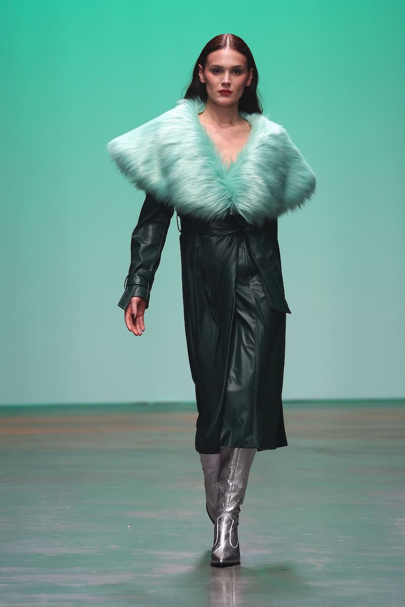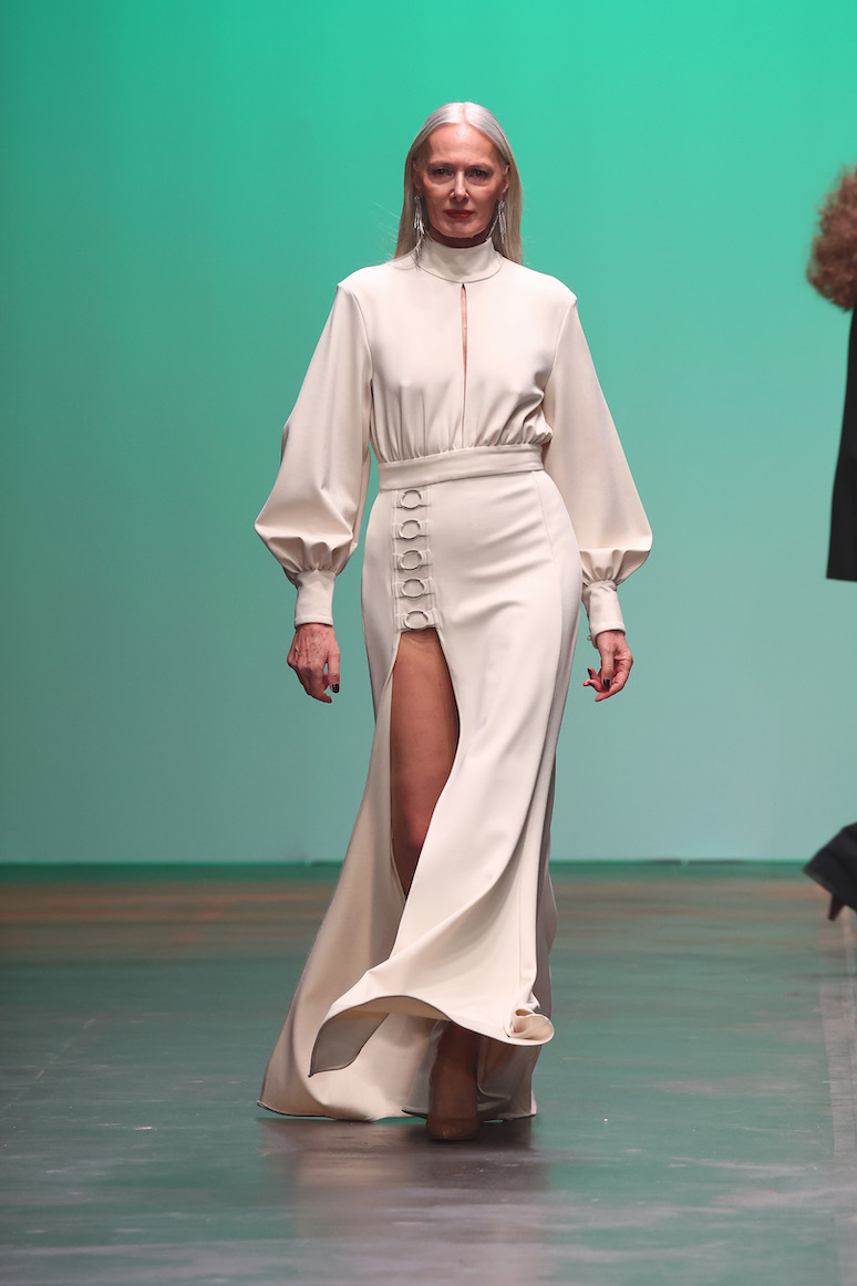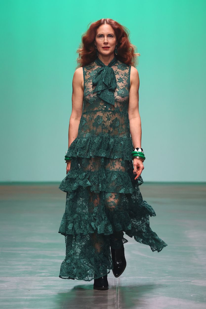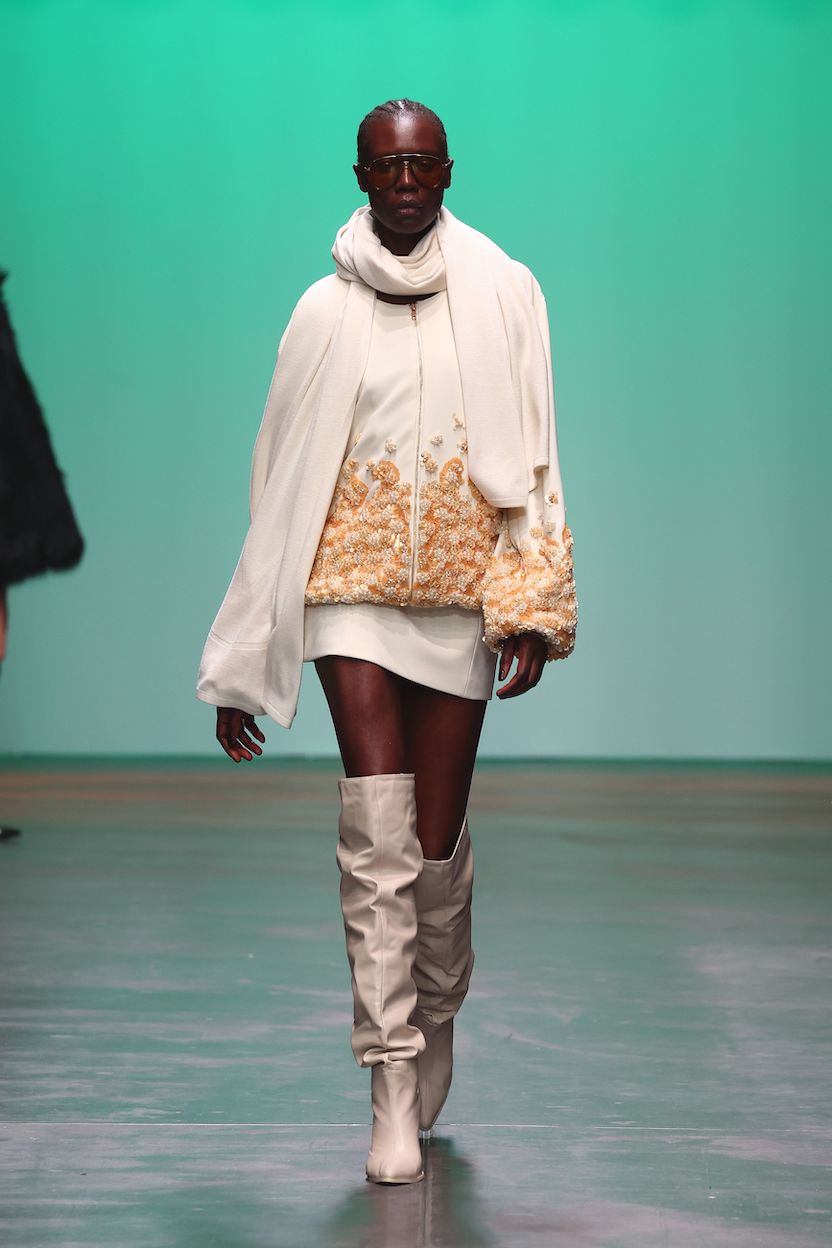 BERLIN, GERMANY – JANUARY 31: A model walks the runway at the COLLECTIVEFOUR Marcel Ostertag fashion show during Berlin Fashion Week Autumn/Winter 2025 at Uber Eats Music Hall on January 31, 2025 in Berlin, Germany. (Photo by Sebastian Reuter/Getty Images for Marcel Ostertag)